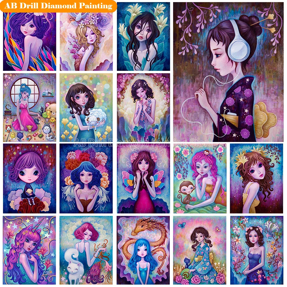 Алмазная живопись 5D с изображением ангела Девушки AB, животные, во...