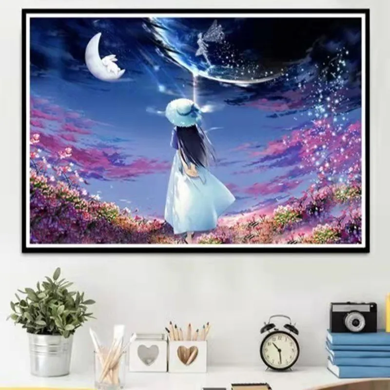Набор для вышивки сделай сам, холст с мультяшным принтом, вышивка крестиком, ночная вышивка Sky11CT, Питер, девочка, украшение для дома