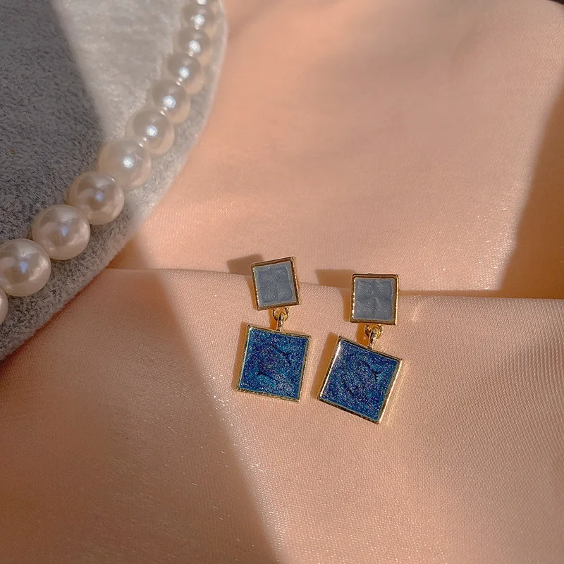 Корейские модные ювелирные изделия, серьги-гвоздики в виде синего цветка любви для женщин, маленькие, свежие, дизайнерские, простые и милые, характерные серьги