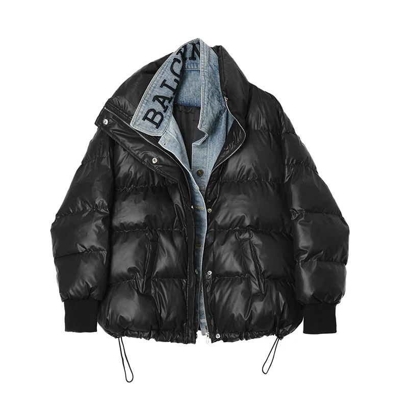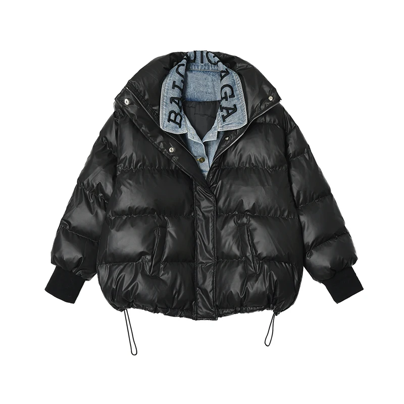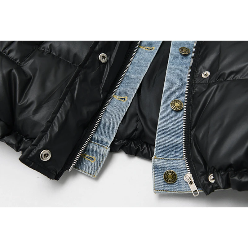 Зимние толстые теплые парки, женская модная черная джинсовая куртка с соединением, женские куртки из искусственного денима, женские хлопковые куртки оверсайз