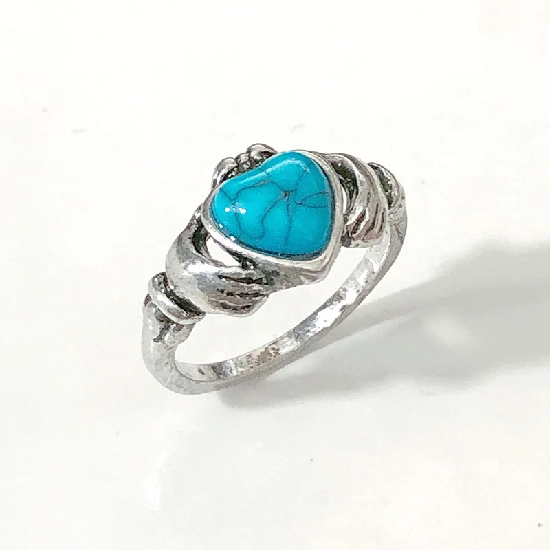 Бирюзовое кольцо в форме сердца в этническом ретро-стиле, модное изысканное кольцо в европейском и американском стиле для мужчин и женщин, ювелирные аксессуары
