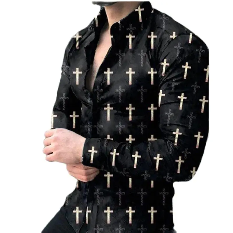 2021 Повседневная рубашка с принтом распятия, топ на пуговицах с от...