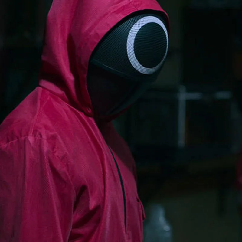 Кальмар игра треугольник квадрат круг Косплей пластиковая маска красный капюшон мужской головной убор босс костюм реквизит