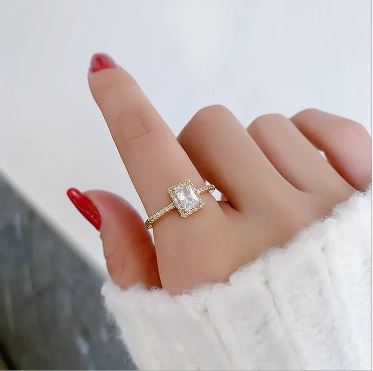 Модные корейские квадратные кубические циркониевые кольца для женщин и девушек с микрозакрепкой Луна Звезда открытое регулируемое кольцо Ювелирные изделия Подарки