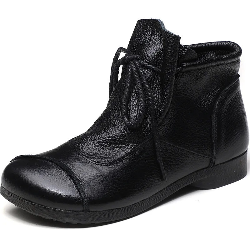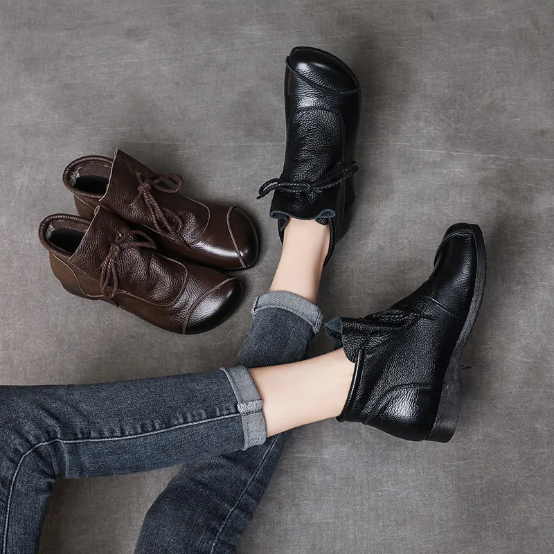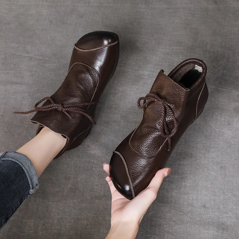 Женские ботильоны в стиле ретро OUKAHUI, из натуральной кожи, на низком каблуке, удобные и мягкие теплые ботинки на плоской подошве, со шнуровкой, Осень-зима 2021
