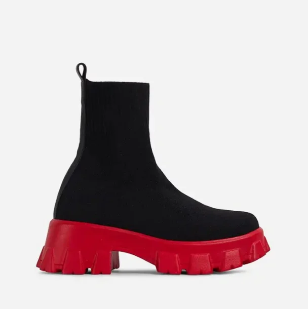 Новые осенне-зимние красные ботинки-носки на платформе с массивной подошвой, женские байкерские ботинки из стрейчевой ткани до середины икры на толстом каблуке, ботинки челси