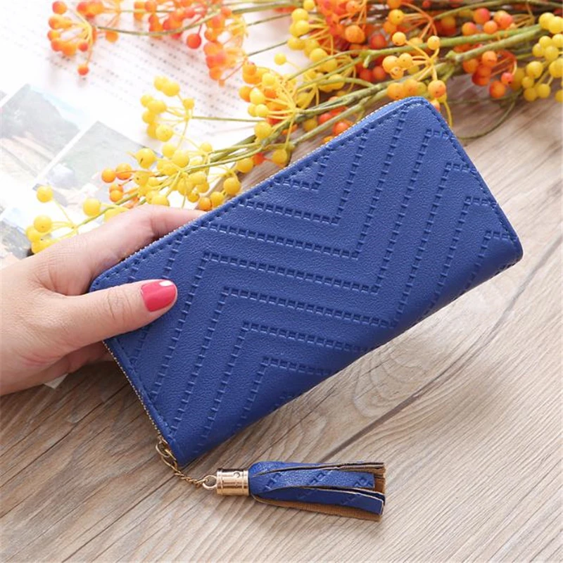 Длинные женские кошельки, модный клатч, белый кожаный женский кошелек высокого качества с кисточкой и держателем для карт, женская сумка для денег