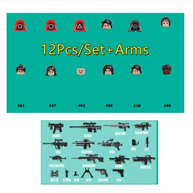 2021 Корейская игра горячих кальмаров, экшн-фигурки, модель, строительные блоки, Классические игровые куклы, детские игрушки для детей