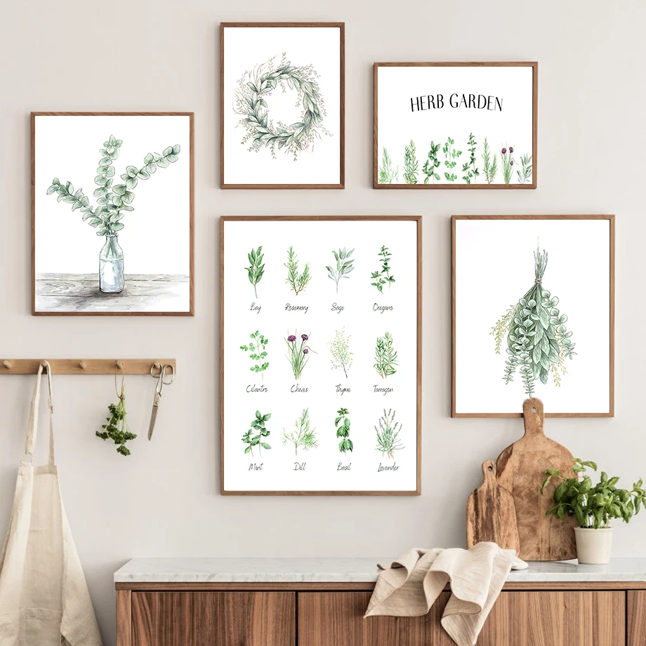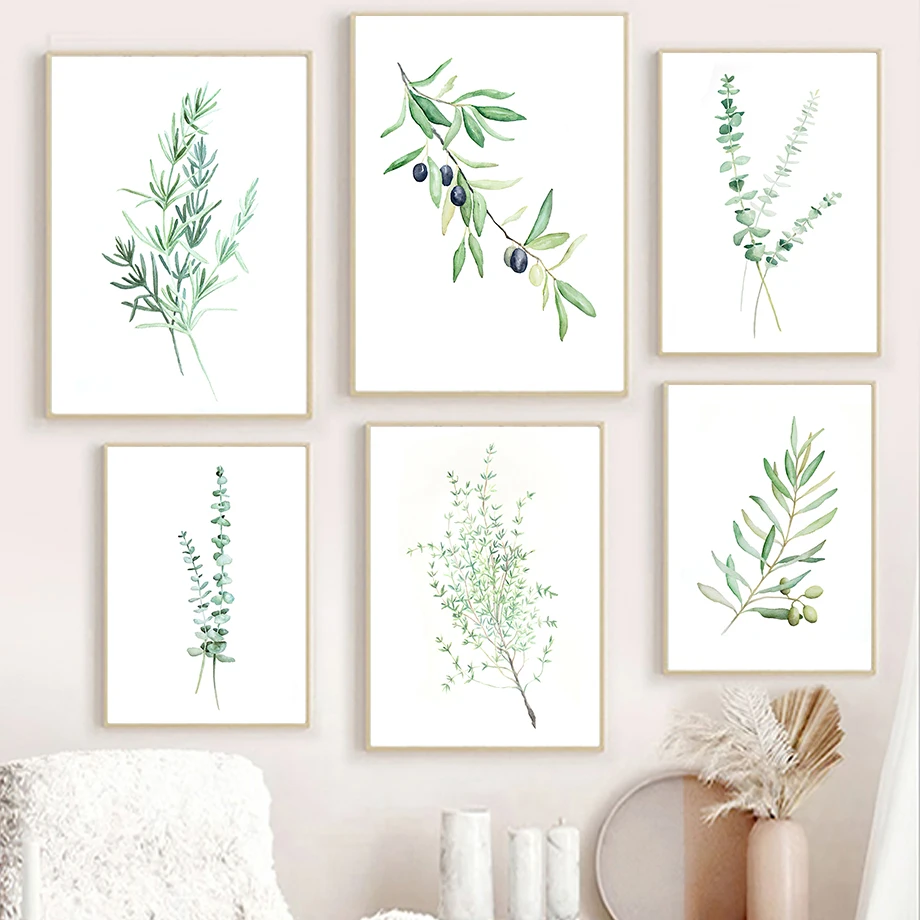 Травяная зелень, Ветви Эвкалипта, ботаническая настенная Картина на холсте, скандинавские плакаты и принты, настенные картины для декора гостиной