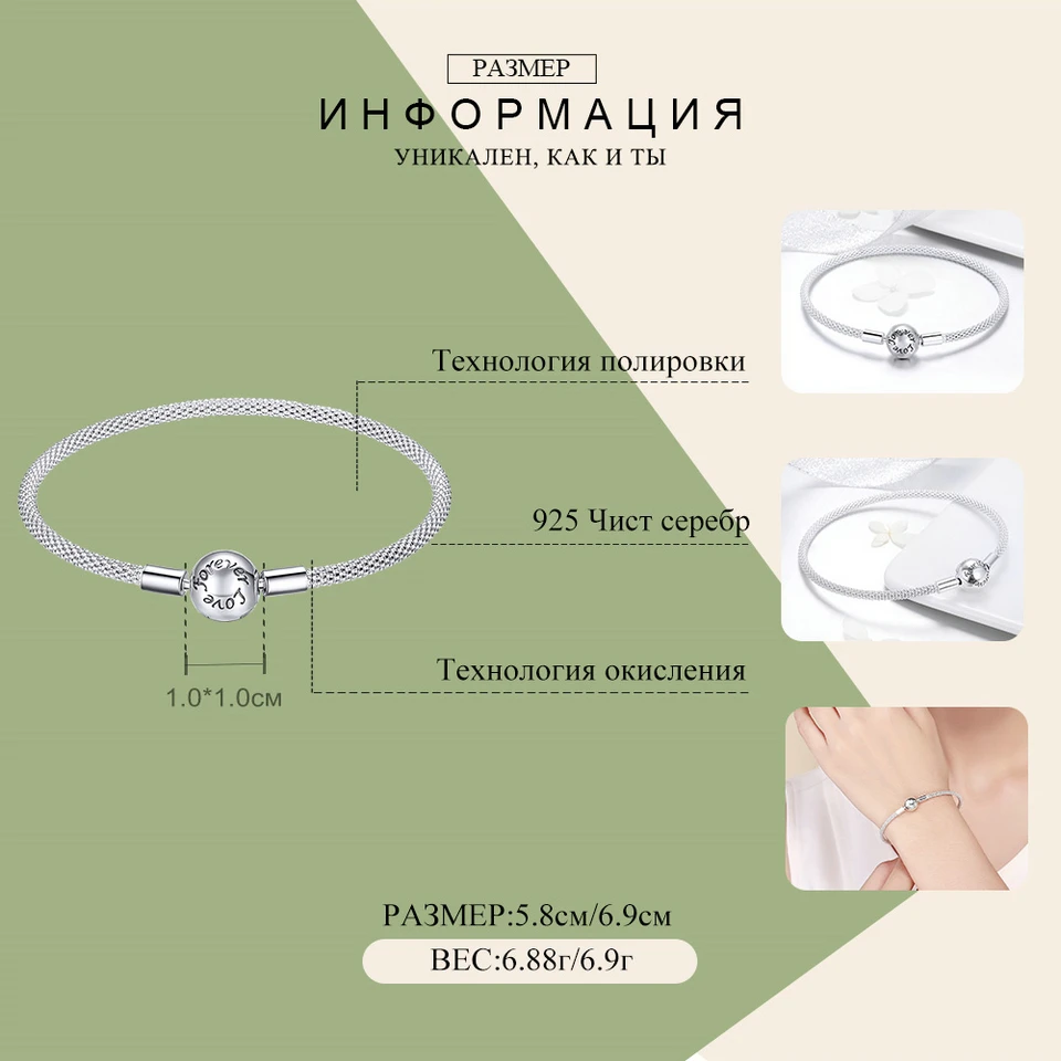 bamoer, серебро 925 пробы, навсегда любовь, браслет-цепочка в виде змеи подходят для женщин, изящные украшения