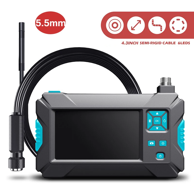 5,5 мм Инспекционная камера-эндоскоп HD1080P 4,3 дюймовый экран IP67 Водонепроницаемый промышленный эндоскоп