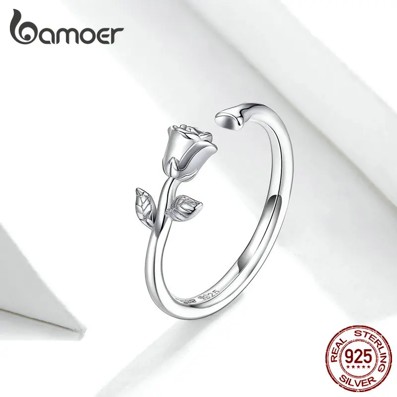 bamoer кольца регулируемое из серебра 925 пробы с розой,женское окрытое кольцо,изящное ювелирное украшение для свадьбы,вечеринки,подарки