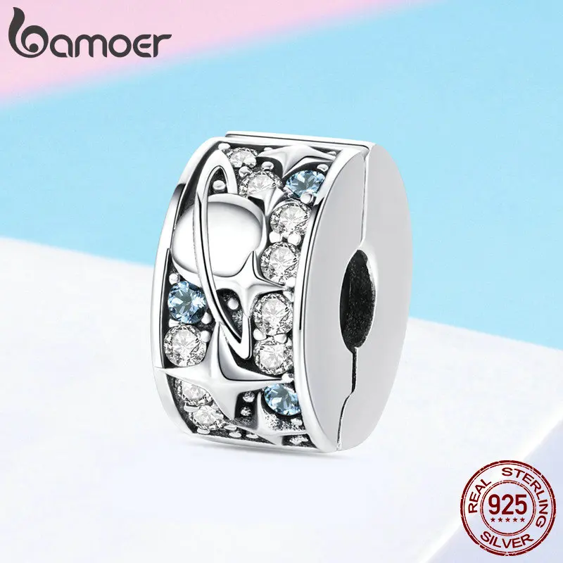 bamoer шарм из серебра 925 пробы,звезда планеты,клипс,разделитель для браслетов и ожерелий, изящное ювелирное изделие подарков