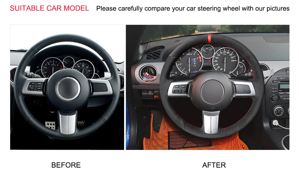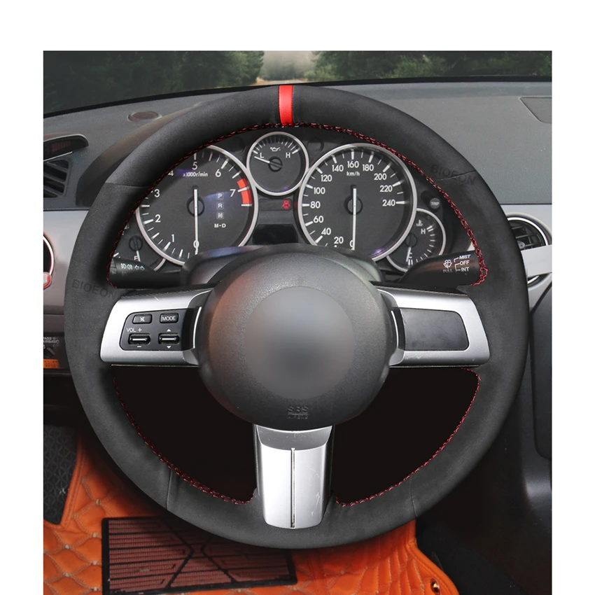 Сшитая вручную черная замшевая Обложка рулевого колеса для Mazda MX-5 Miata RX-8 2006 2007 2008 2009 2010-2011 2012 2013