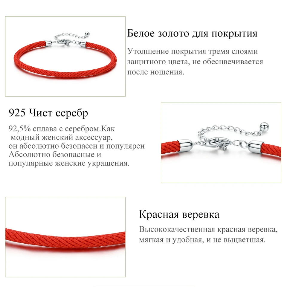 Женский браслет из серебра и красного веревочного шнура, 100% 925 п...
