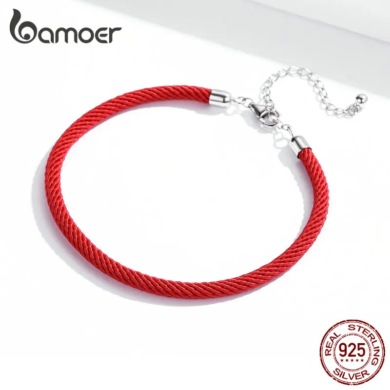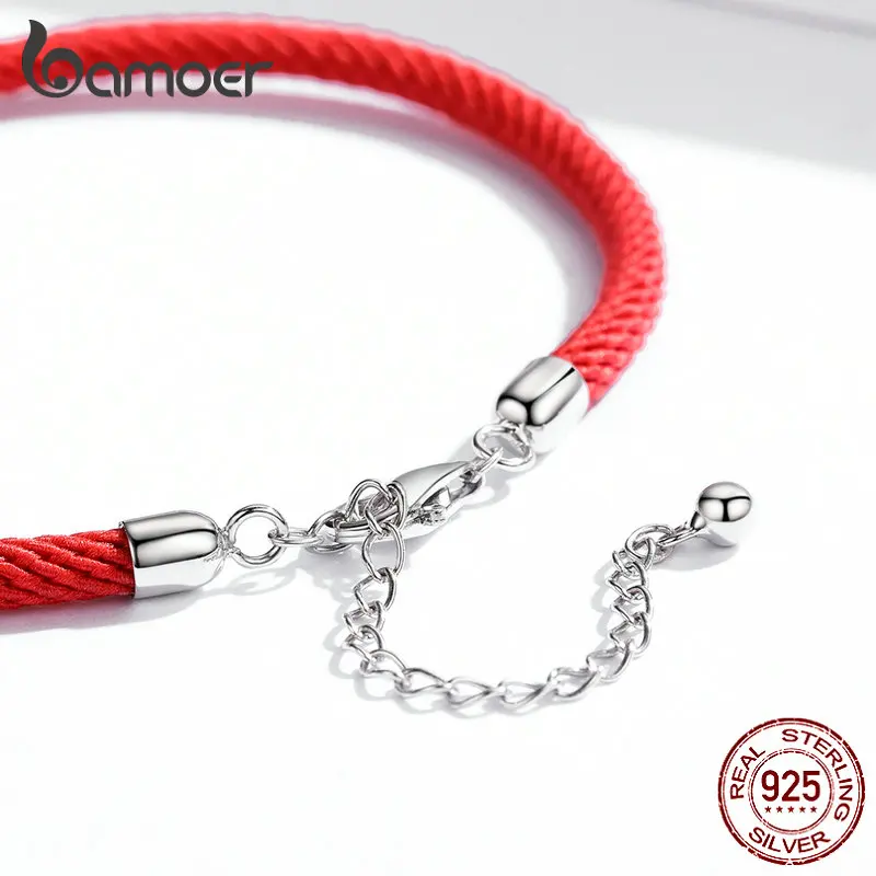 bamoer 925 пробы серебро китайский красный браслет с подвесками регулируемый от 16 см до 21 см девушки женские ювелирные украшения