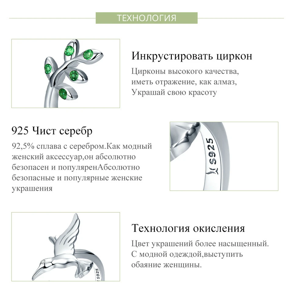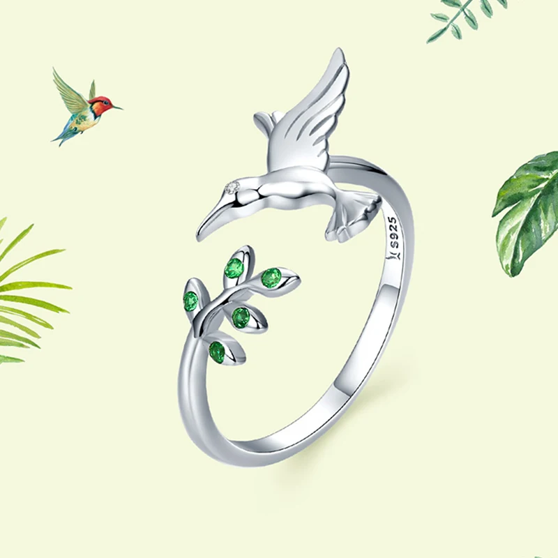 bamoer кольца регулируемые "привет от колибри"из серебра 925 пробы,женское окрытое кольцо,изящное ювелирное украшение для свадьбы, вечеринки, подарки