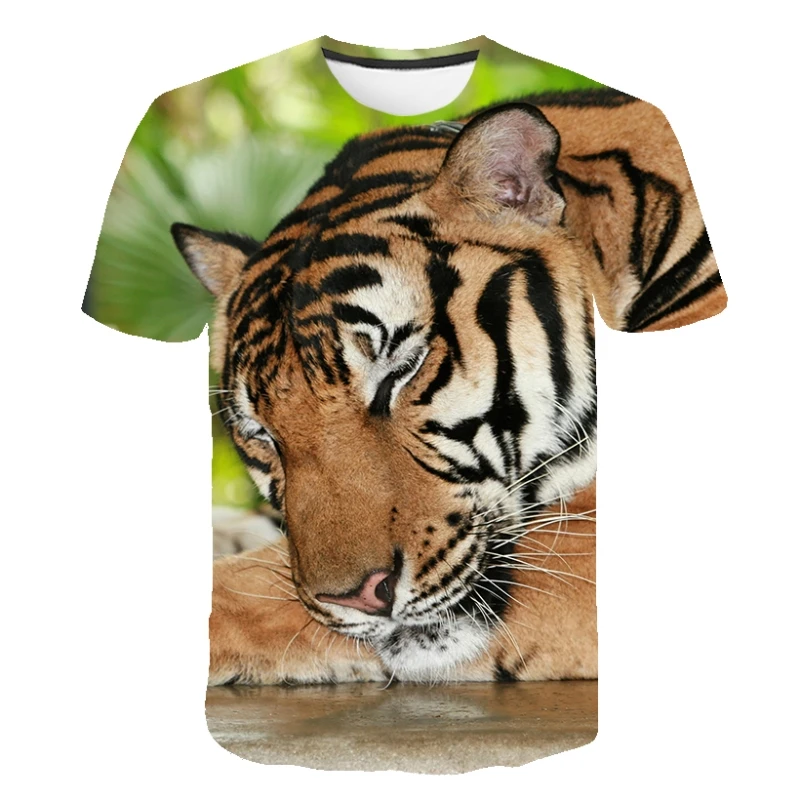 Футболка мужская с коротким рукавом, страшная Реалистичная рубашка с принтом тигра и животных, модный топ с круглым вырезом, большие размеры, лето 2021