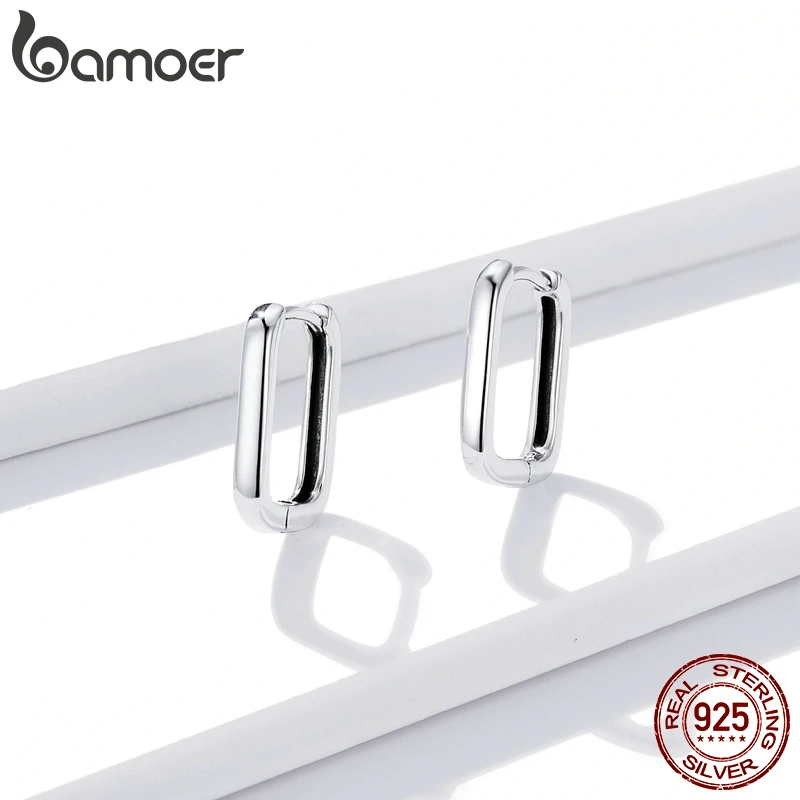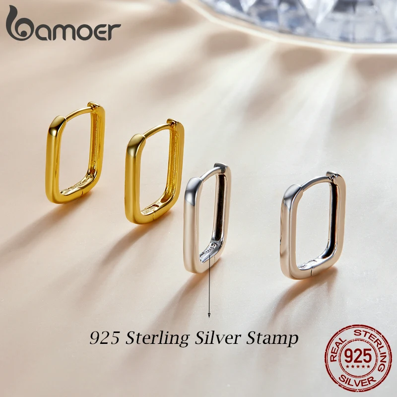 bamoer 925 пробы серебро золото платиновое покрытие квадратная пряжка серьги классические простые французские серьги женские ювелирные украшения