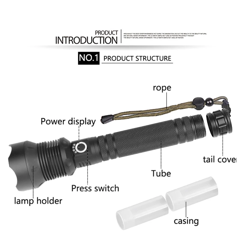 Новейший 5000 мАч светодиодный светильник для вспышки с зумом USB Перезаряжаемый самый мощный фонарь XHP70.2 на 18650 26650 ручной светильник портативный точечный светильник