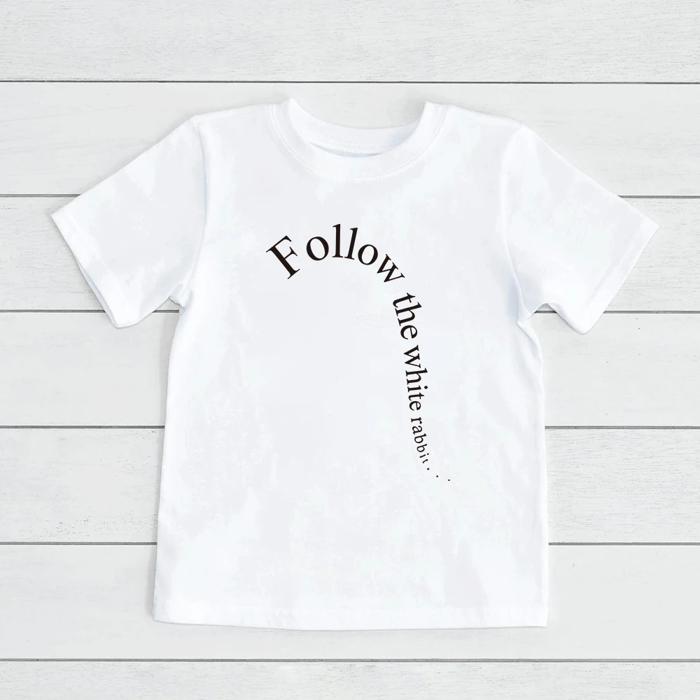 Модные топы с принтом Follow The White Rabbit '', футболки, одежда, детская футболка с рисунком Алисы в стране чудес, тренд Прямая поставка