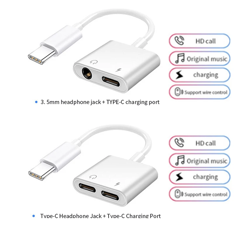 Suitableaux adapter 2 in 1 type c to 3mm jack charging Connector