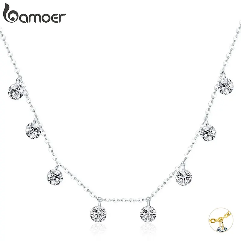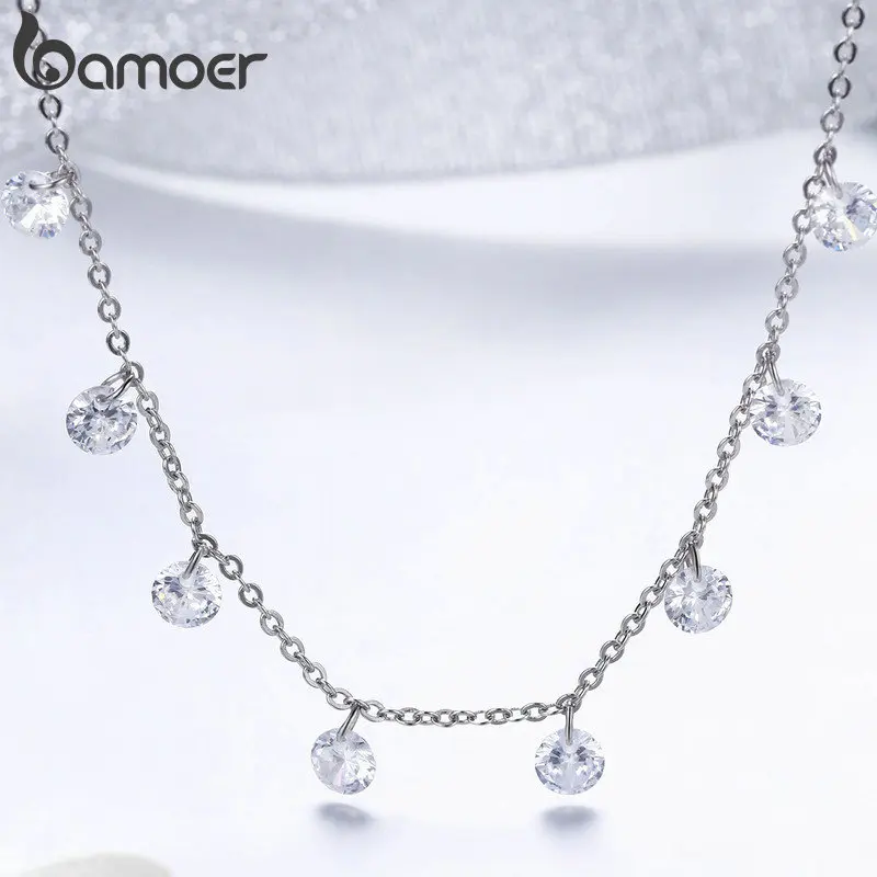 bamoer женское колье "чистая красота" из серебра 925 пробы,подвески с цирконами,цепь на шею,высшее изящное ювелирное изделие подарков 37 см (регулируемый)