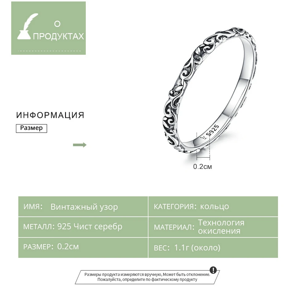 Кольцо женское из серебра 925 пробы, с винтажным узором, минималист...