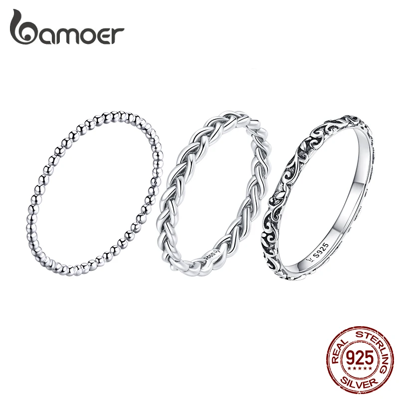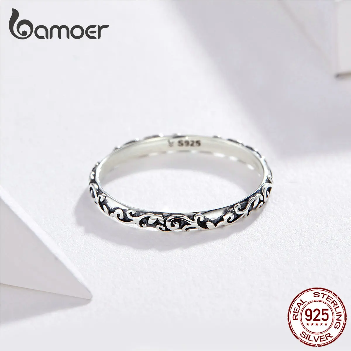 bamoer, серебро 925 пробы, винтажное кольцо с узором, твист-кольцо, ретро-индивидуальность, женские ювелирные украшения
