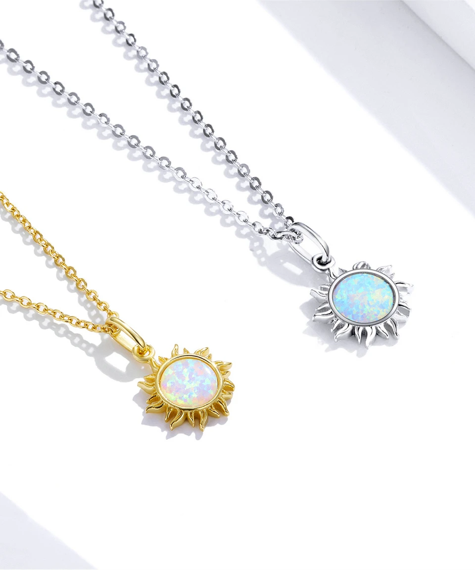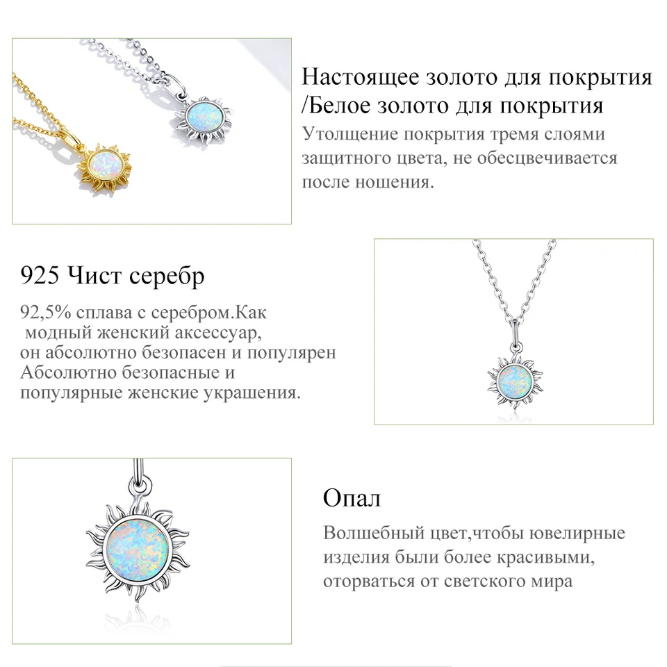 bamoer женское колье из серебра 925 пробы,сольце с цветным опалом,цепь на шею,высшее изящное ювелирное изделие подарков