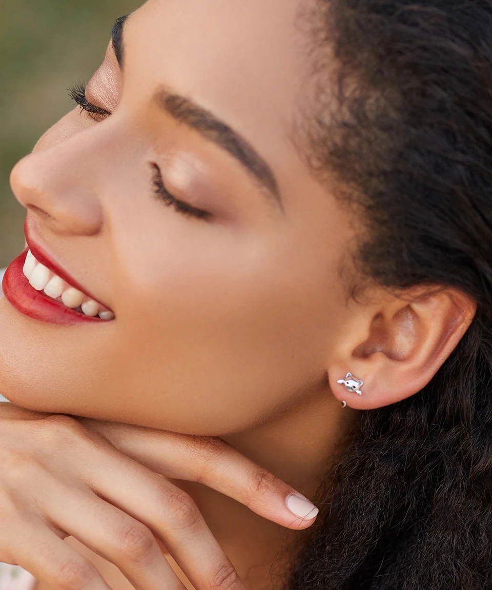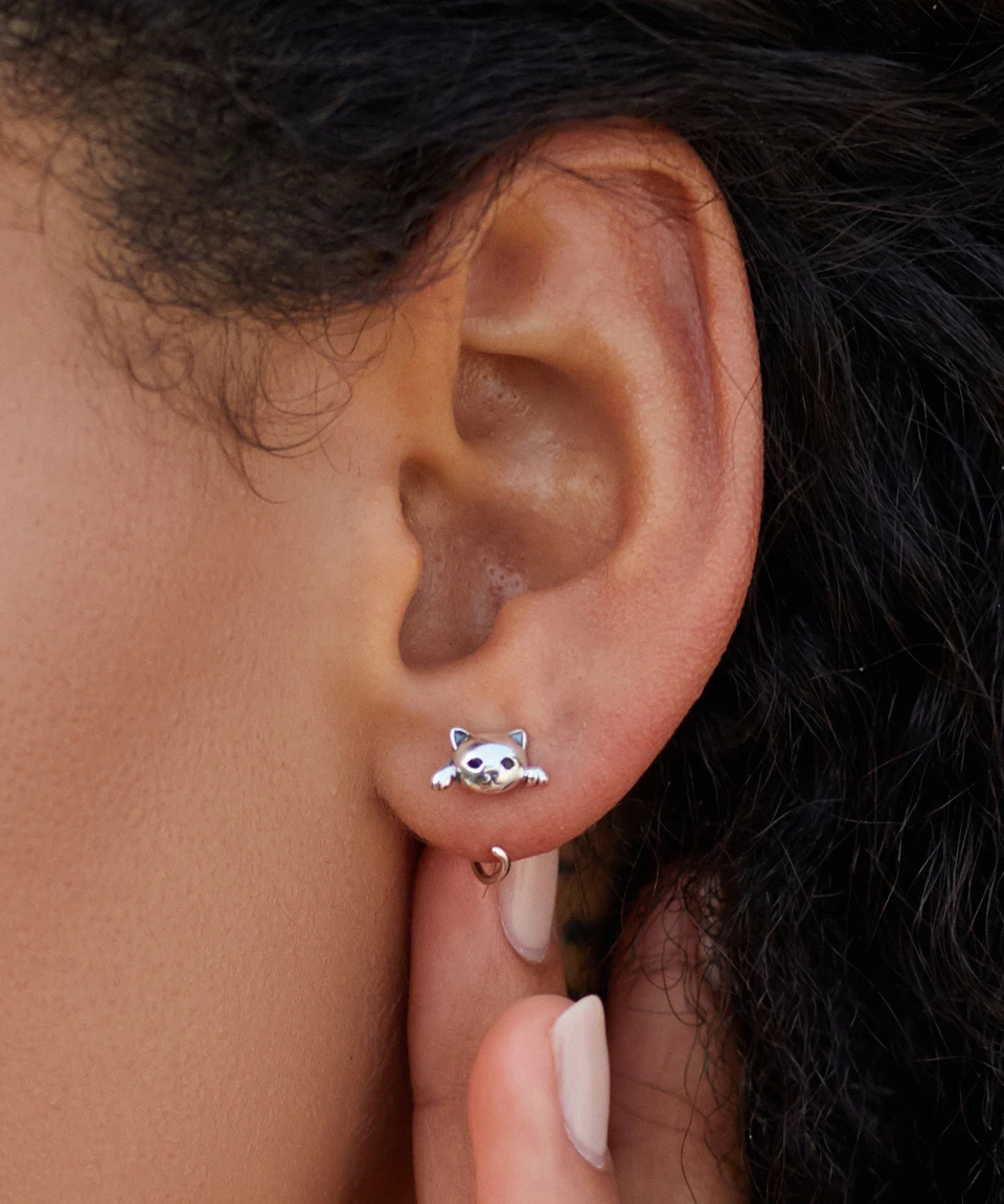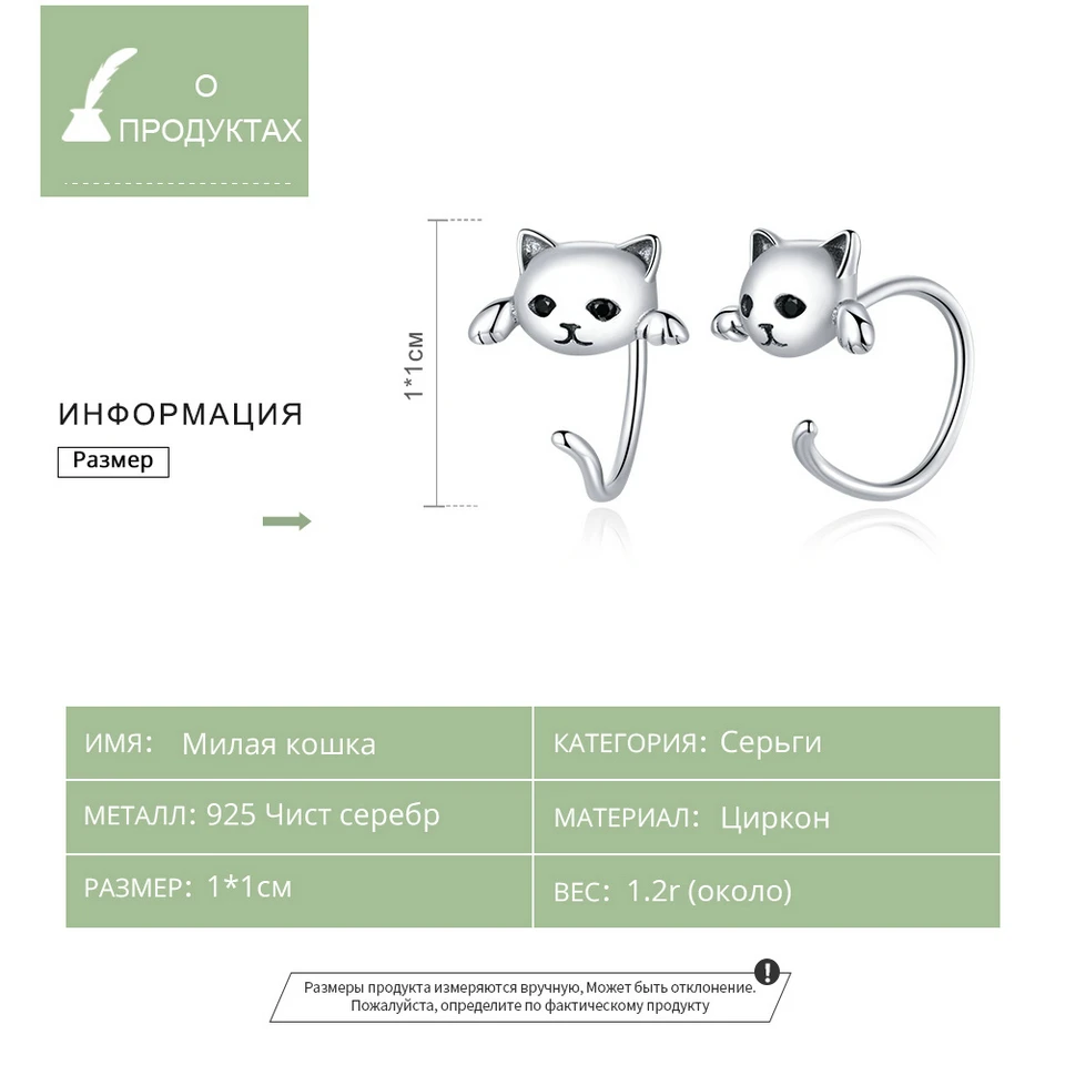 bamoer, стерлингового серебра 925 пробы, милые серьги с милым котом, черные серьги-гвоздики в виде глаз с цирконием, женские ювелирные украшения