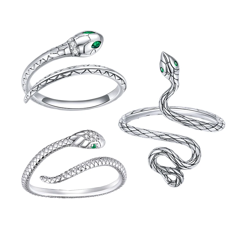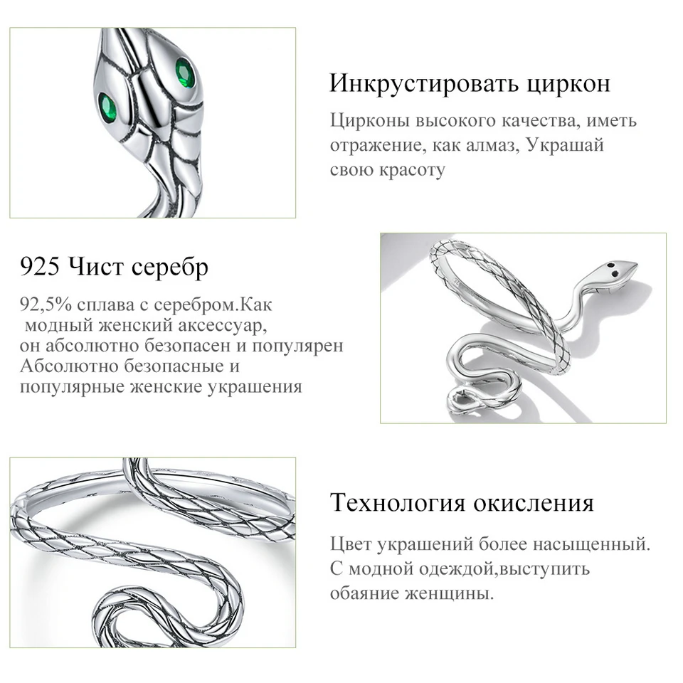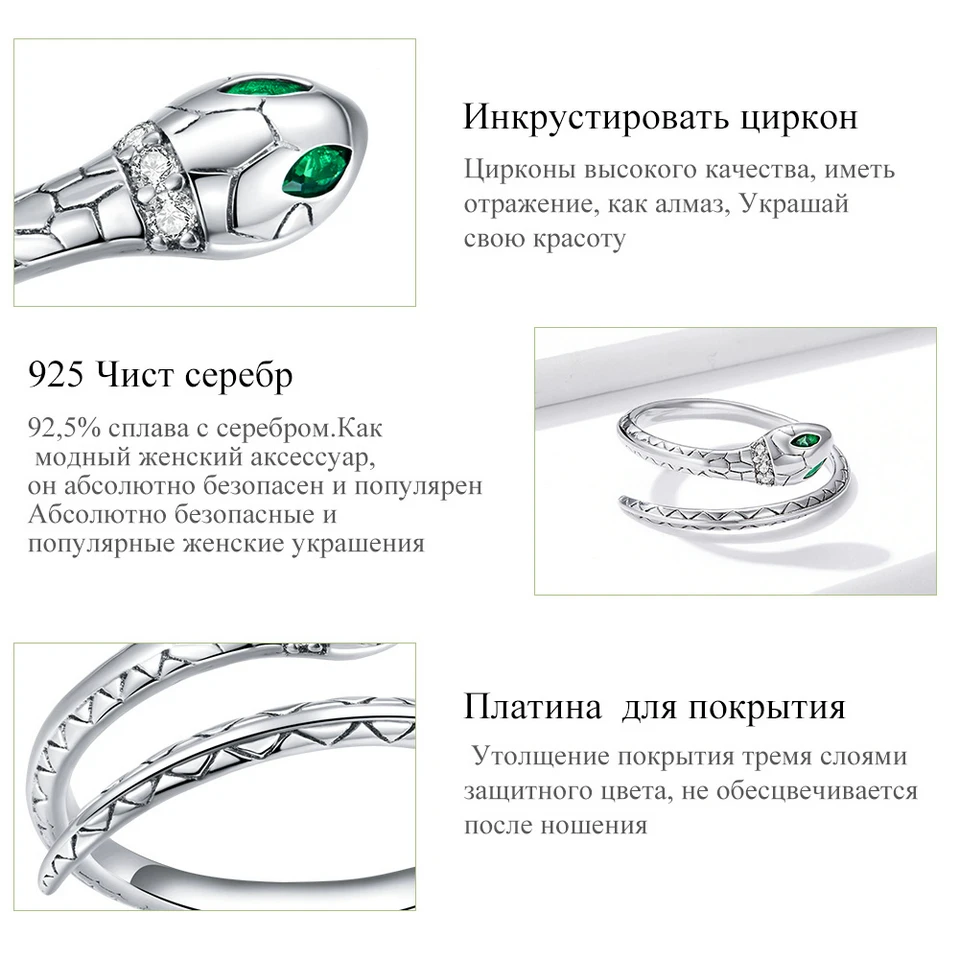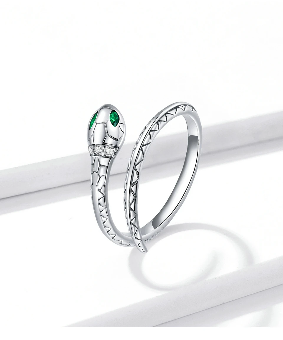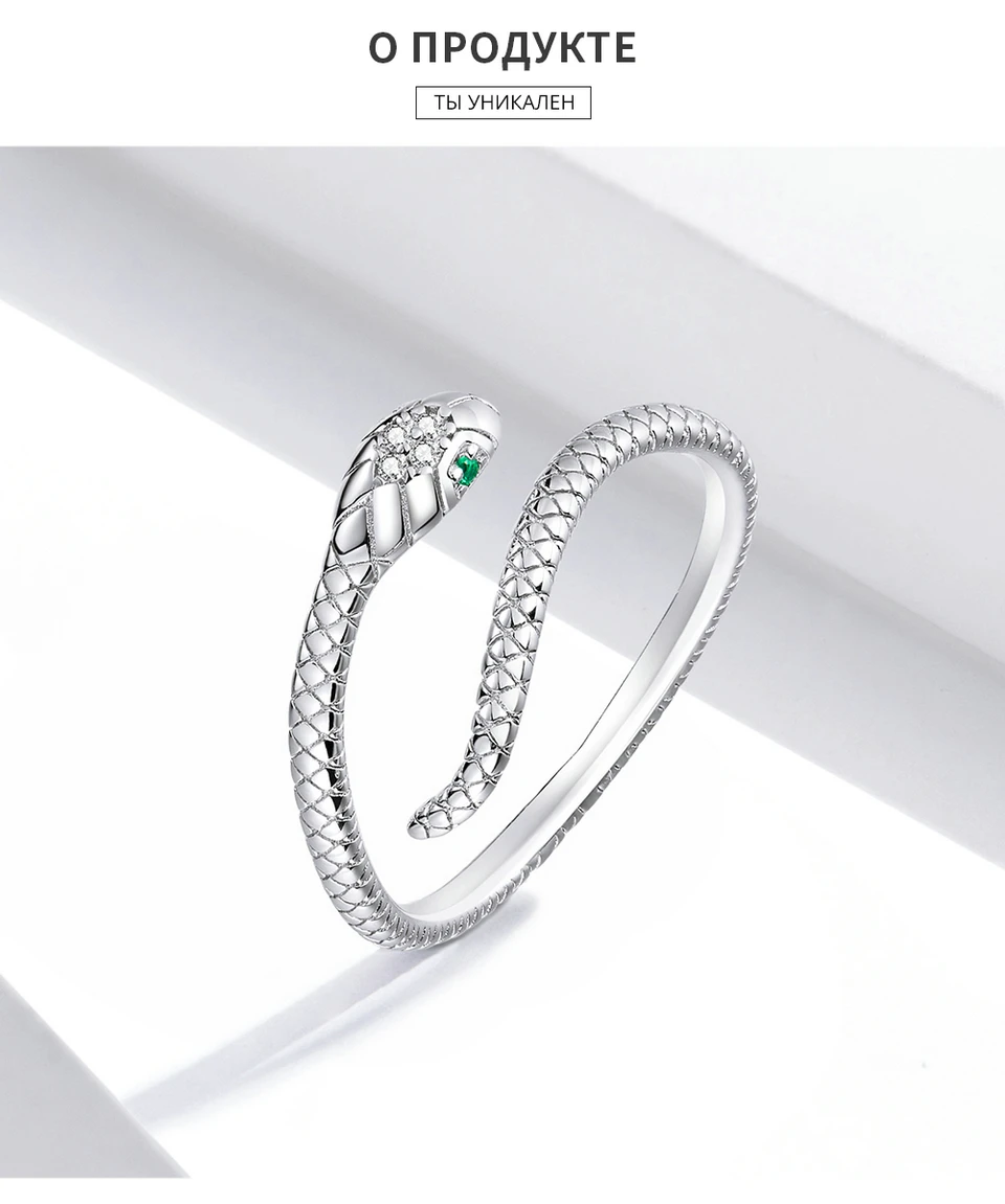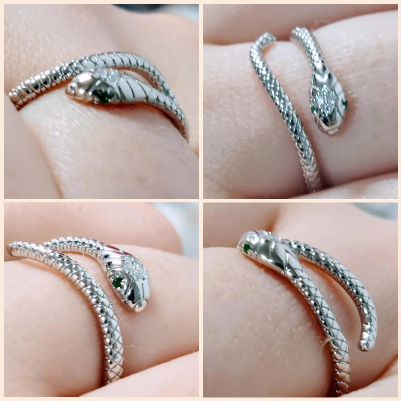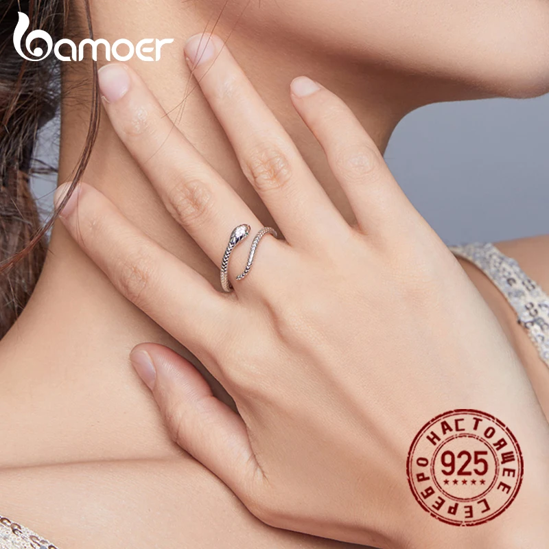 bamoer стерлинговое серебро 925 пробы, винтажное кольцо со змеей, покрытие, платиново-зеленый, циркон, ретро, регулируемое открытое кольцо, женские ювелирные украшения