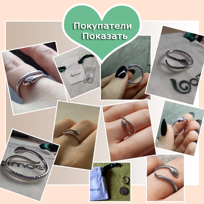 Серебряное кольцо bamoer 925 пробы для женщин, регулируемое кольцо ...
