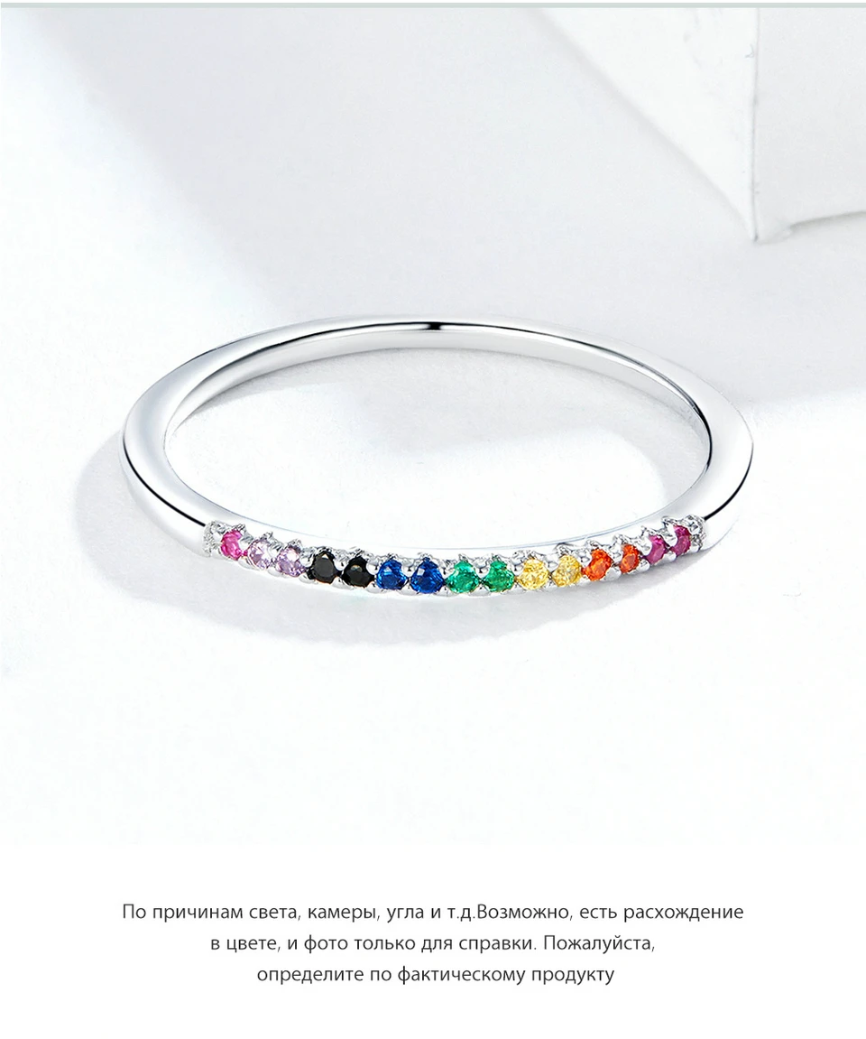 bamoer, стерлинговое серебро 925 пробы, кольцо на палец с радужным ...