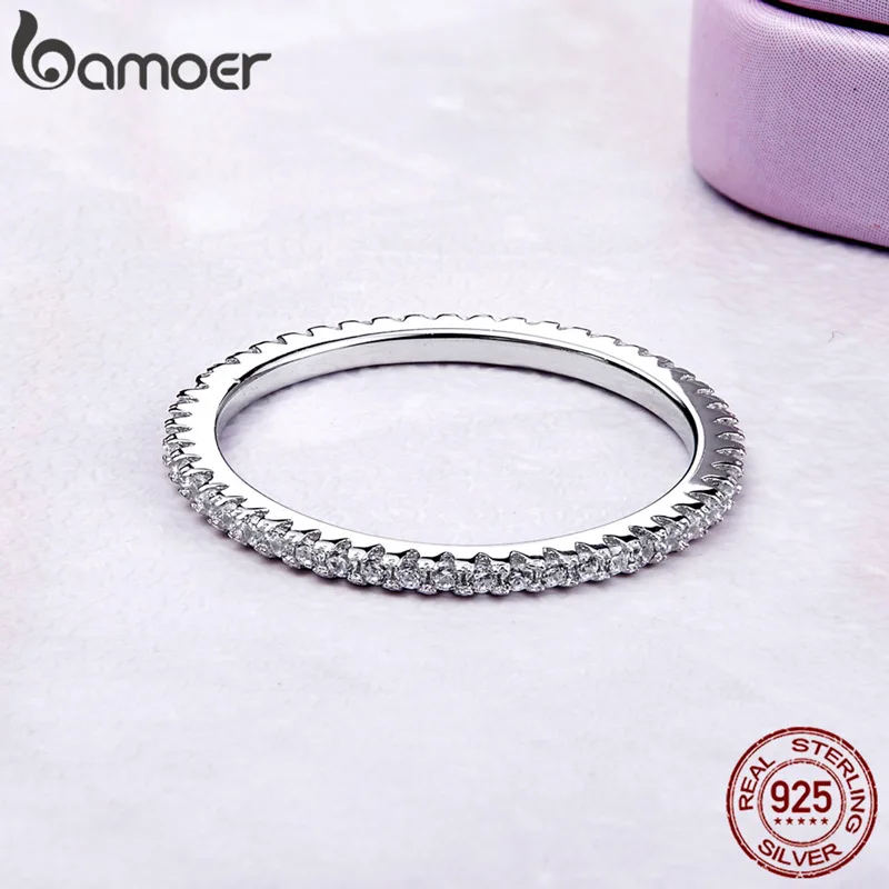 bamoer кольцо из серебра 925 пробы,женское простое кольцо с цирконами,геометрическое кольцо,изящное ювелирное изделие подарков