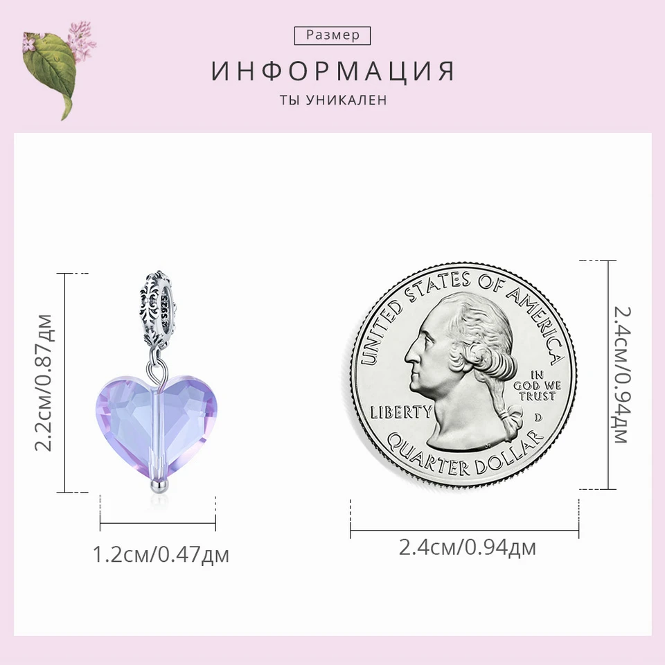 Bamoer Серебро Простой фиолетовый сердце очарование Кристалл Сказка...