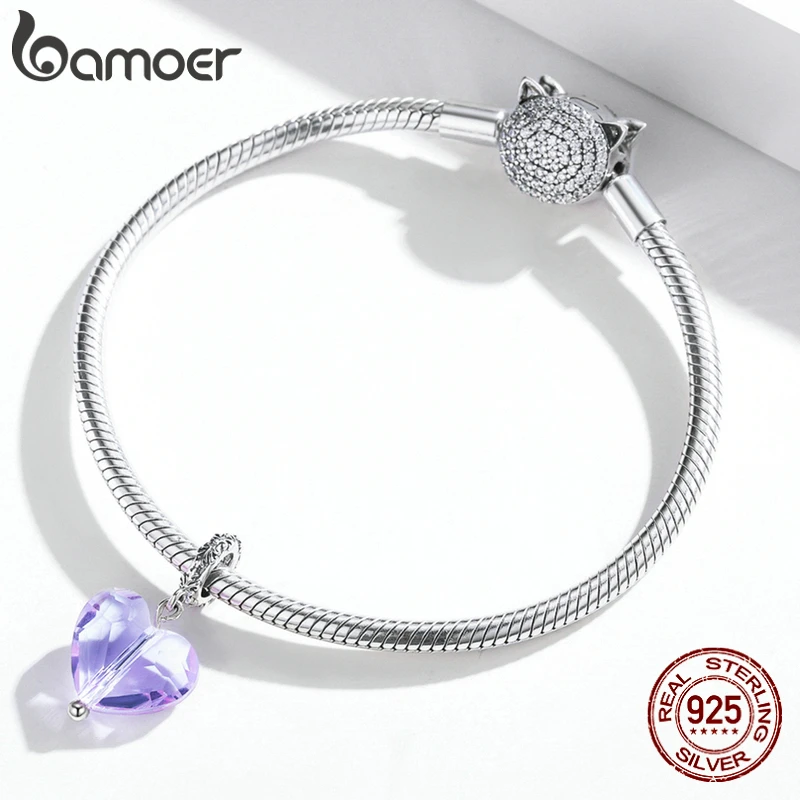 bamoer 925 пробы серебро подвески,классическая форма сердца,хрустальная кулон для браслетов и ожерелий,изящное ювелирное изделие подарков
