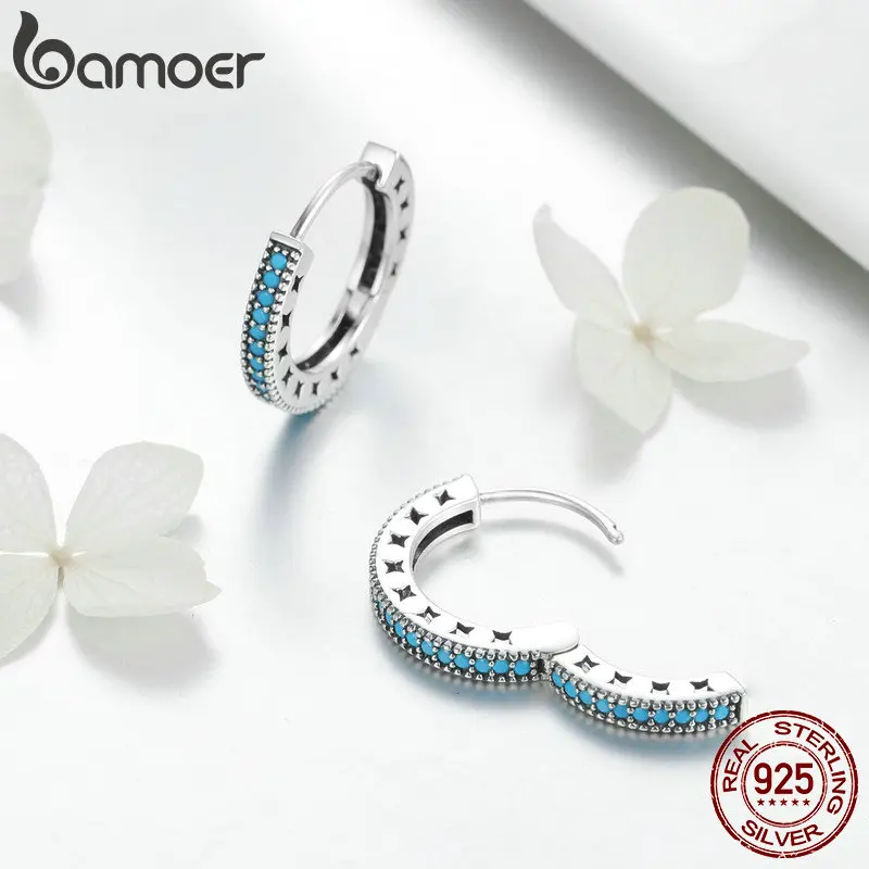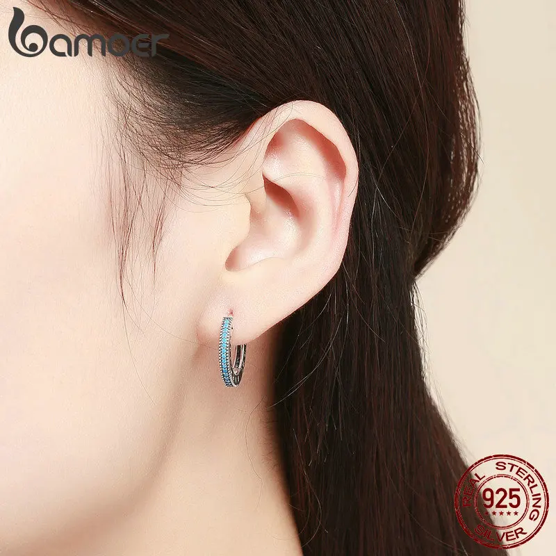 bamoer женские серьги-кольца из серебра 925 пробы,Богемский стиль,простая геометрическая форма,изящное ювелирное изделие подарков