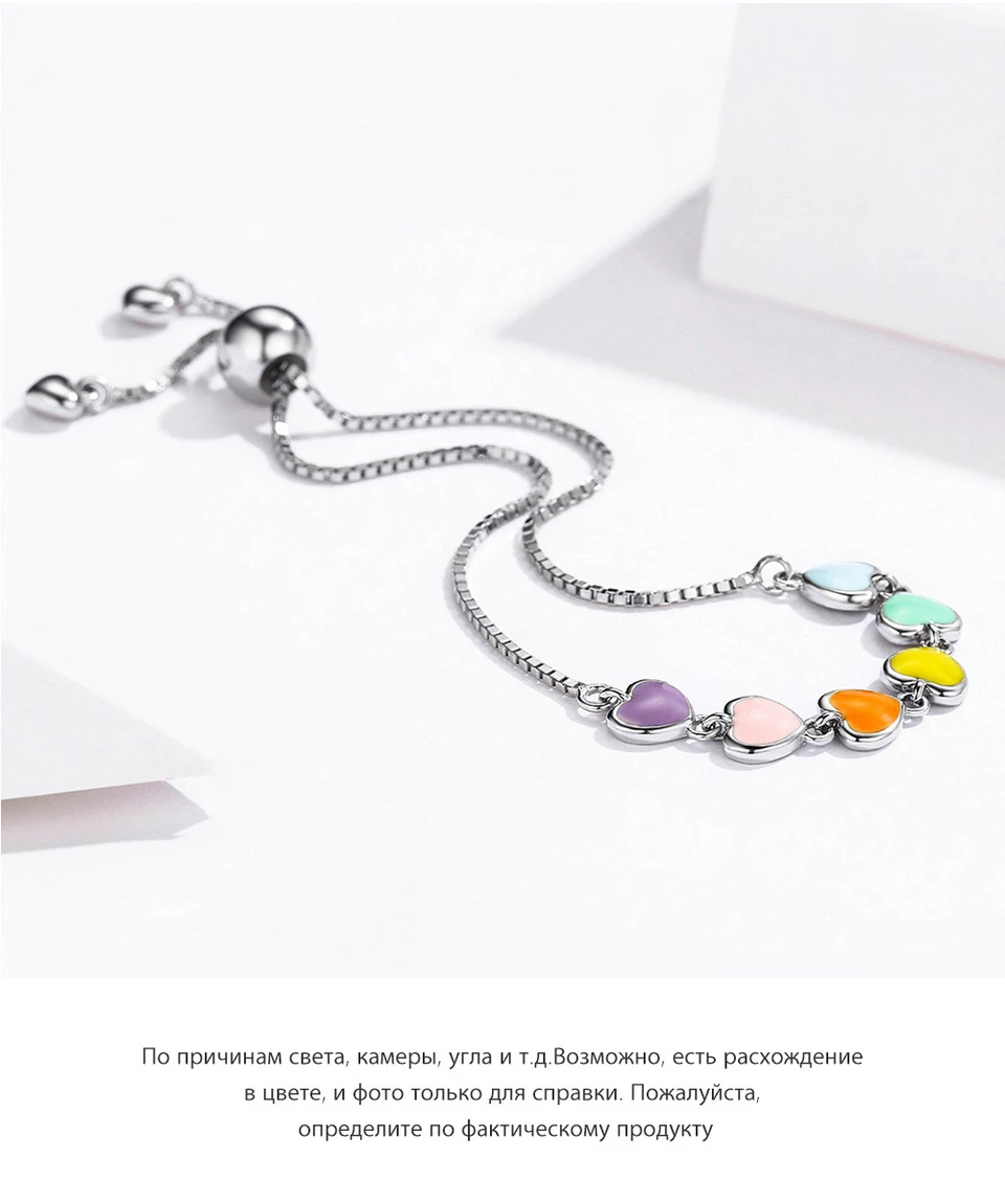 bamoer браслет из серебра 925 пробы,эмаль браслета в форме радужные сердца ,регулируемые браслеты,изящное ювелирное изделие подарков