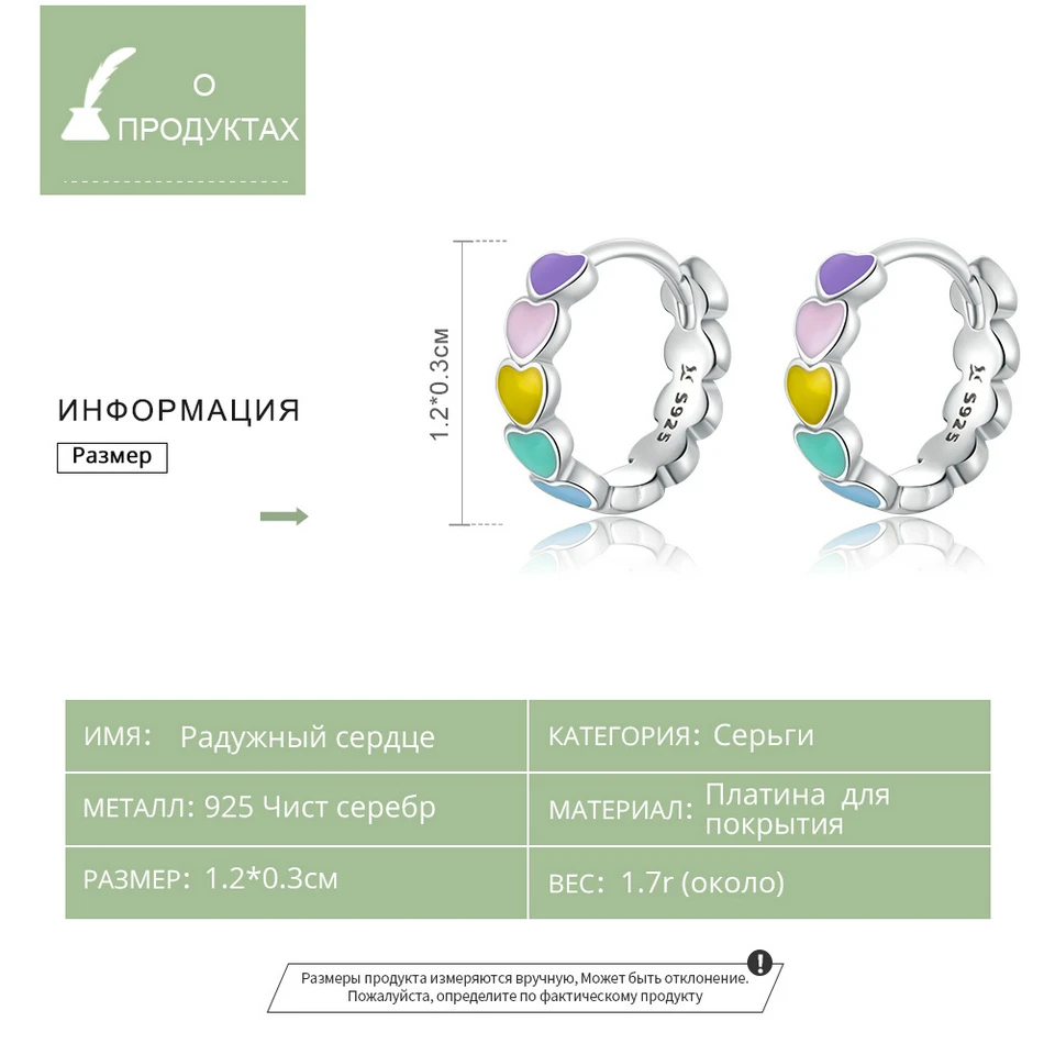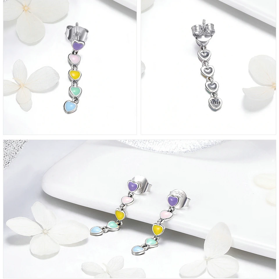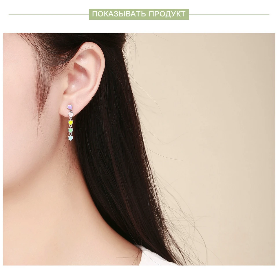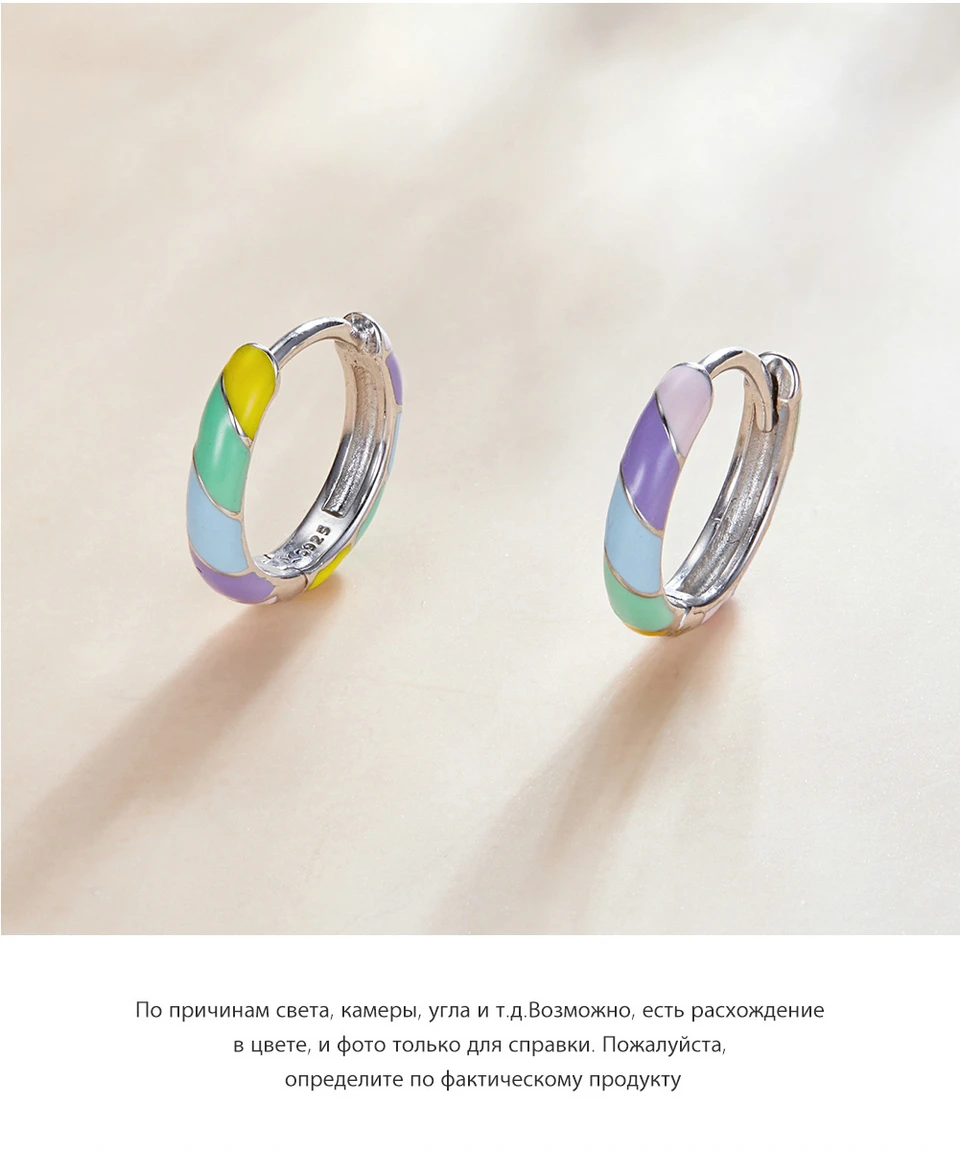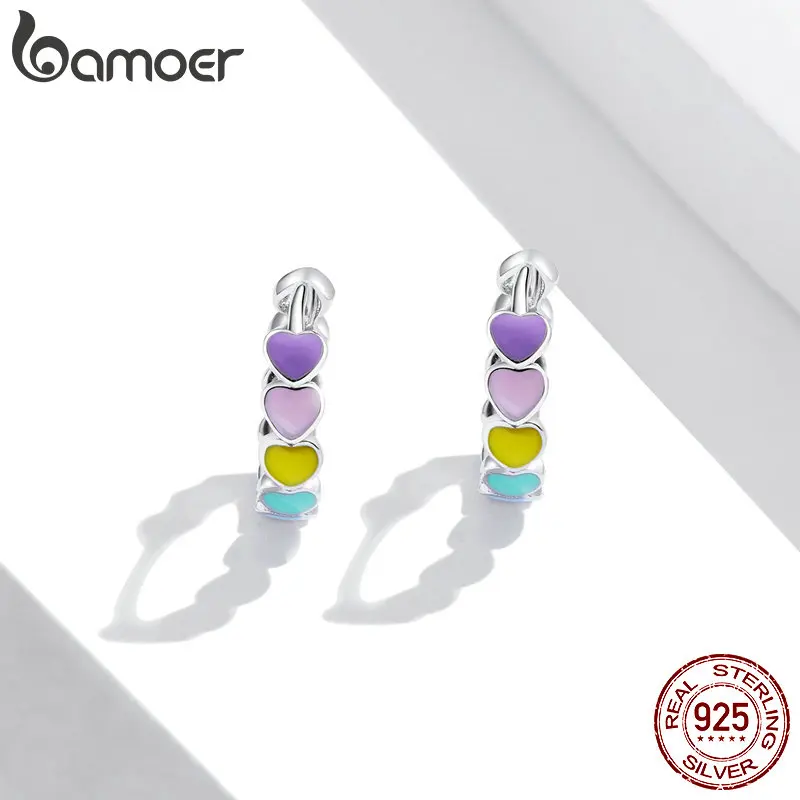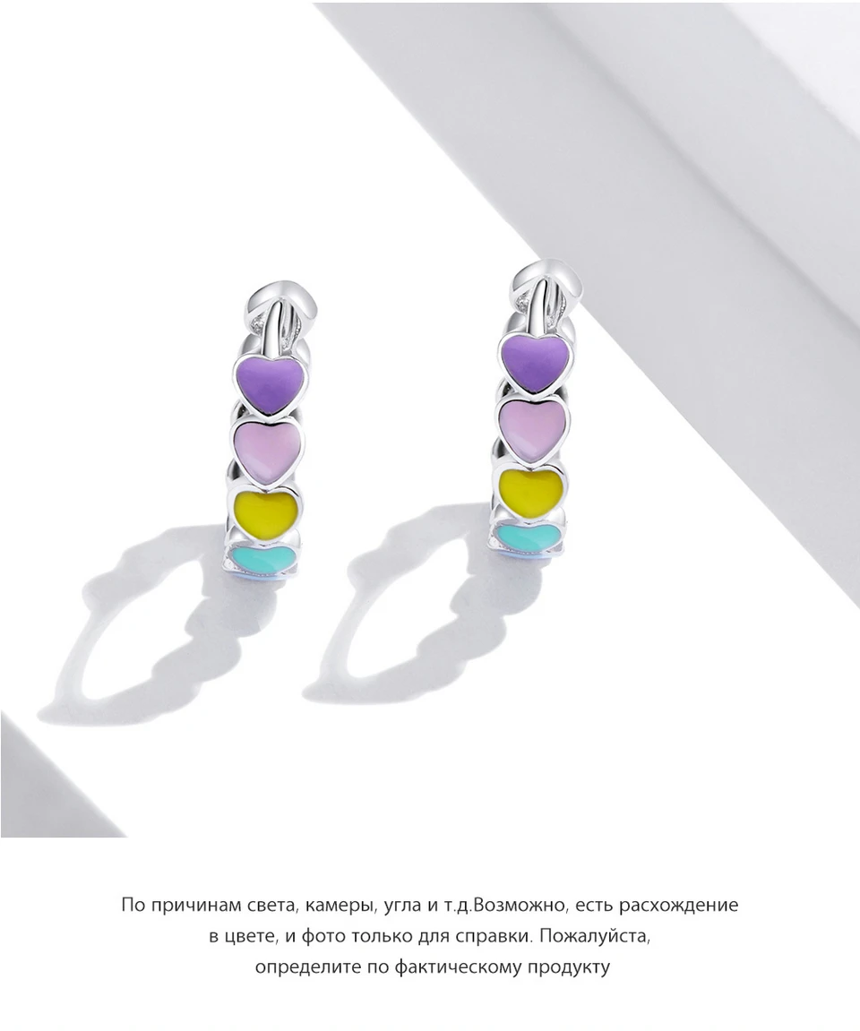 bamoer подлинное серебро 925 пробы, разноцветные эмалевые серьги-кольца в форме сердца, радуги, модные женские украшения для девочек