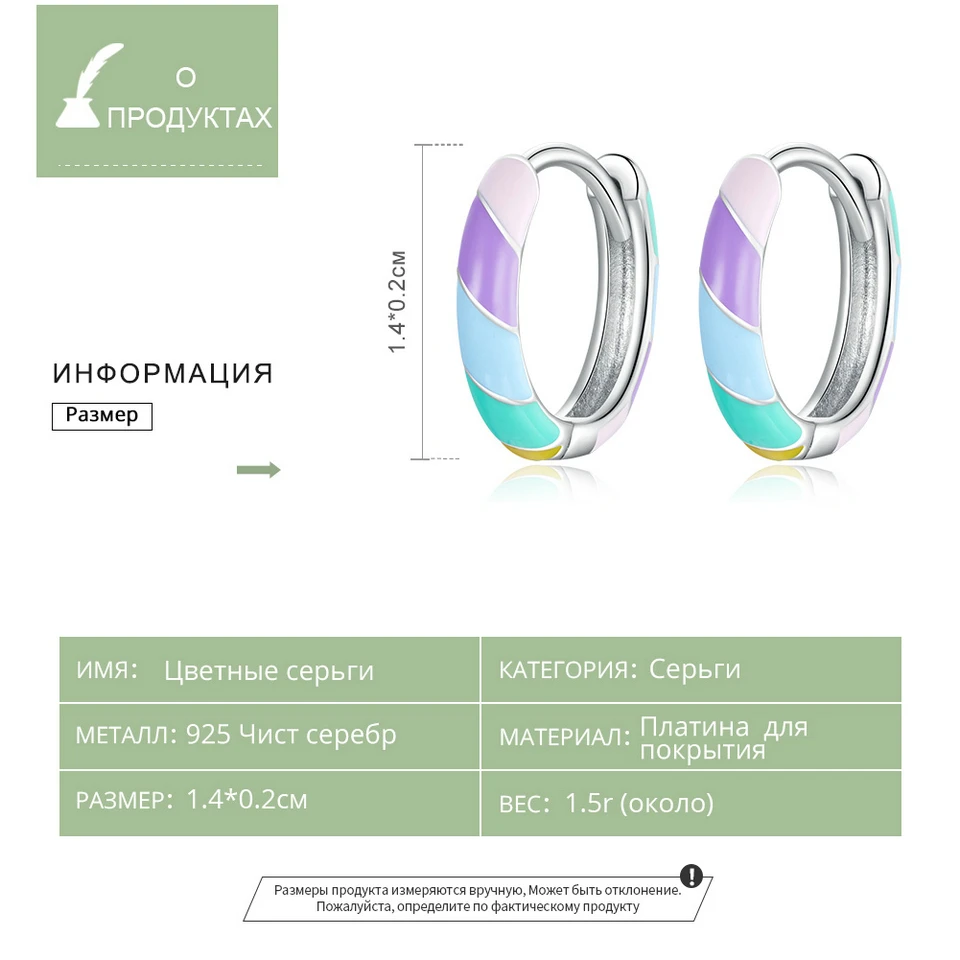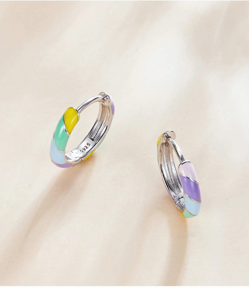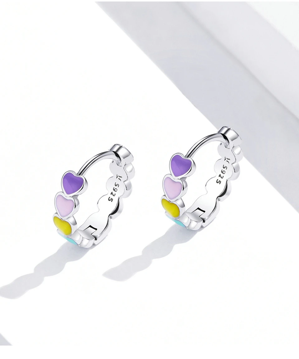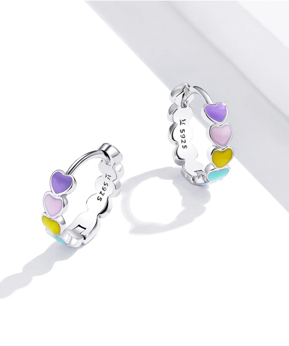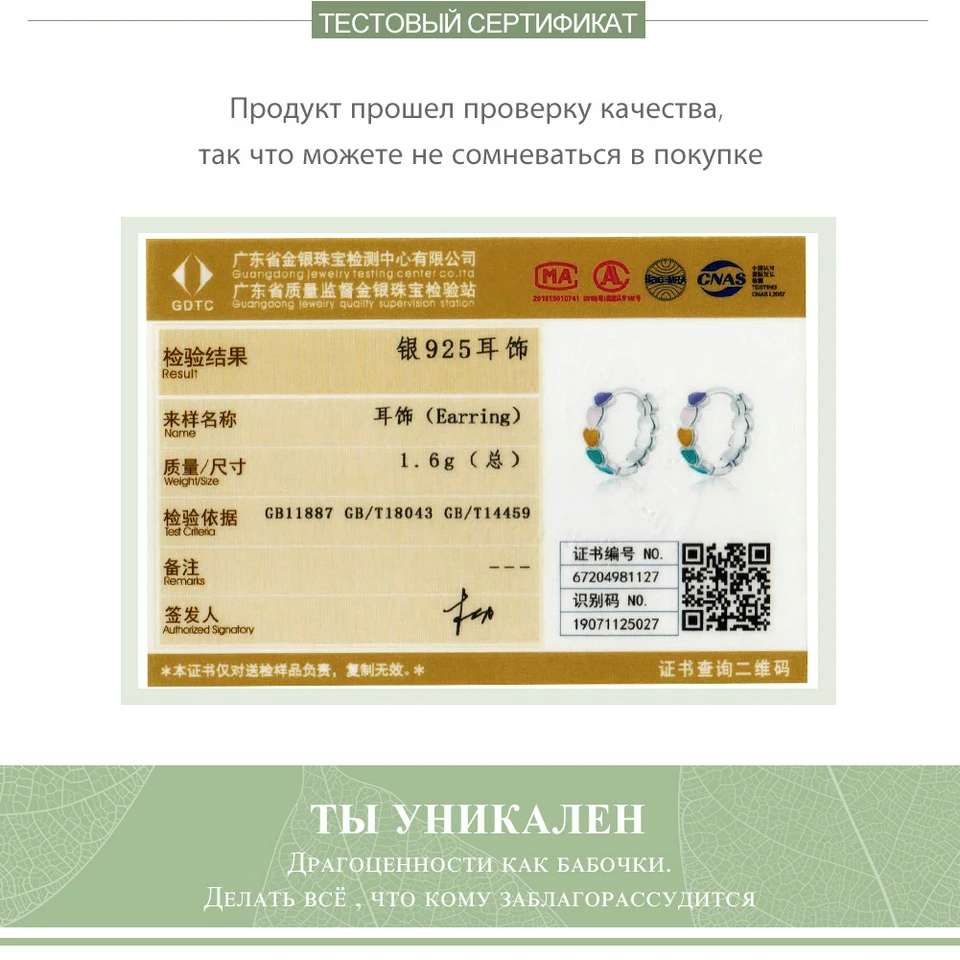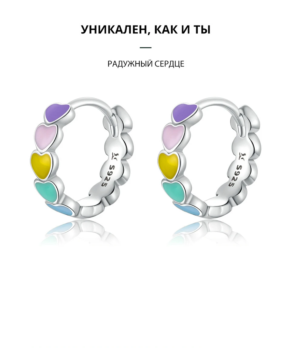 bamoer подлинное серебро 925 пробы, разноцветные эмалевые серьги-кольца в форме сердца, радуги, модные женские украшения для девочек