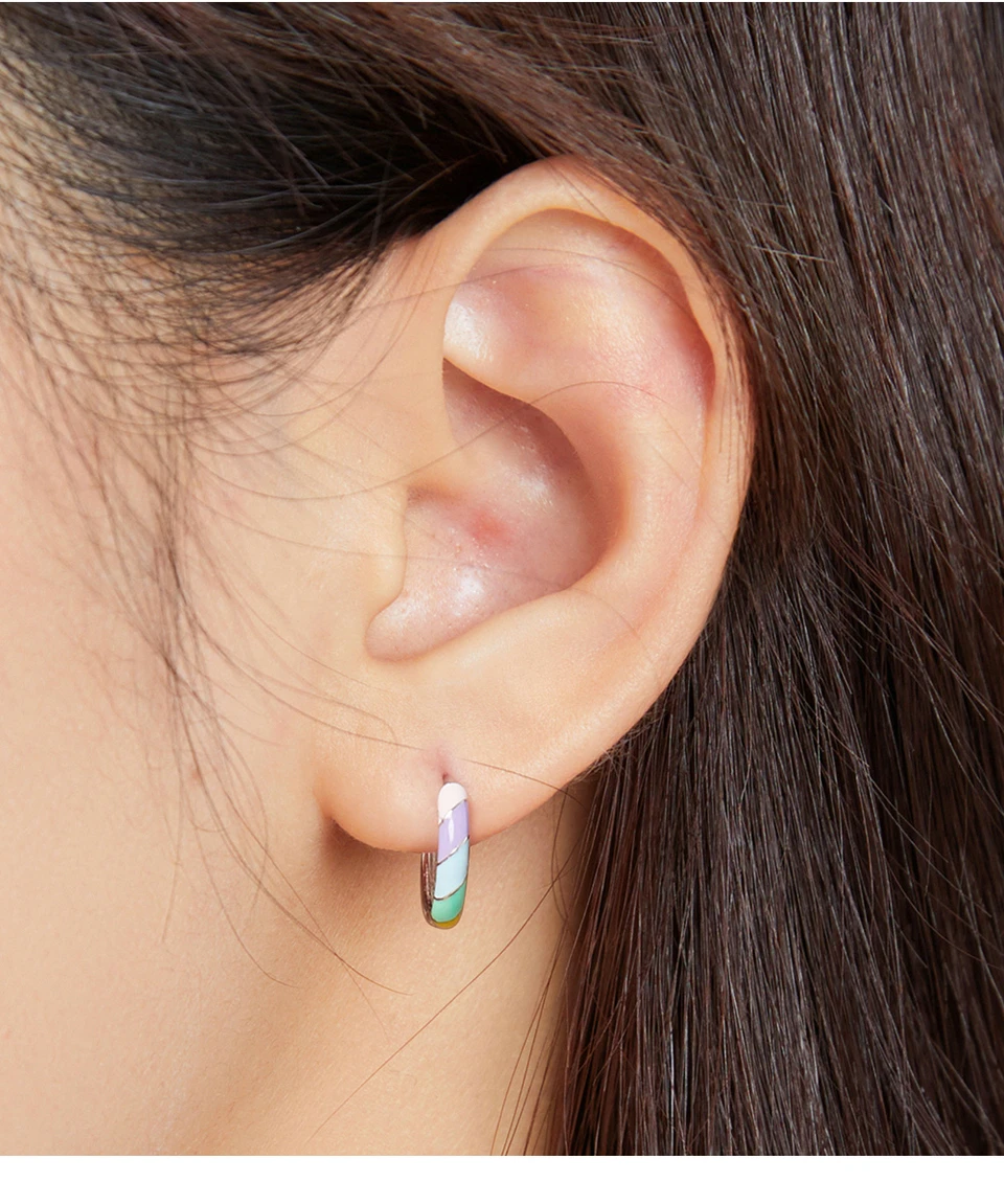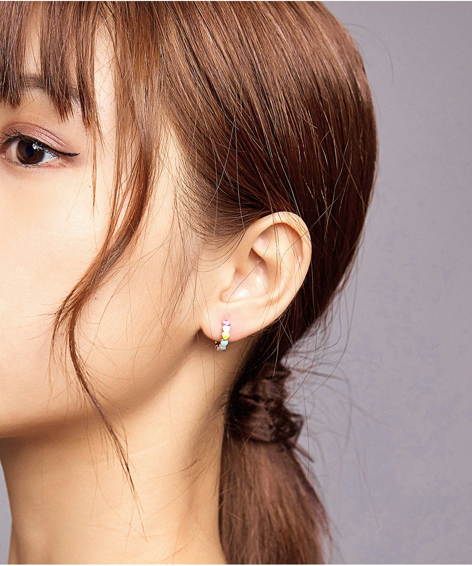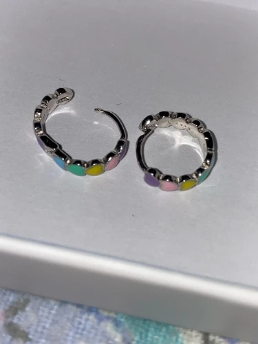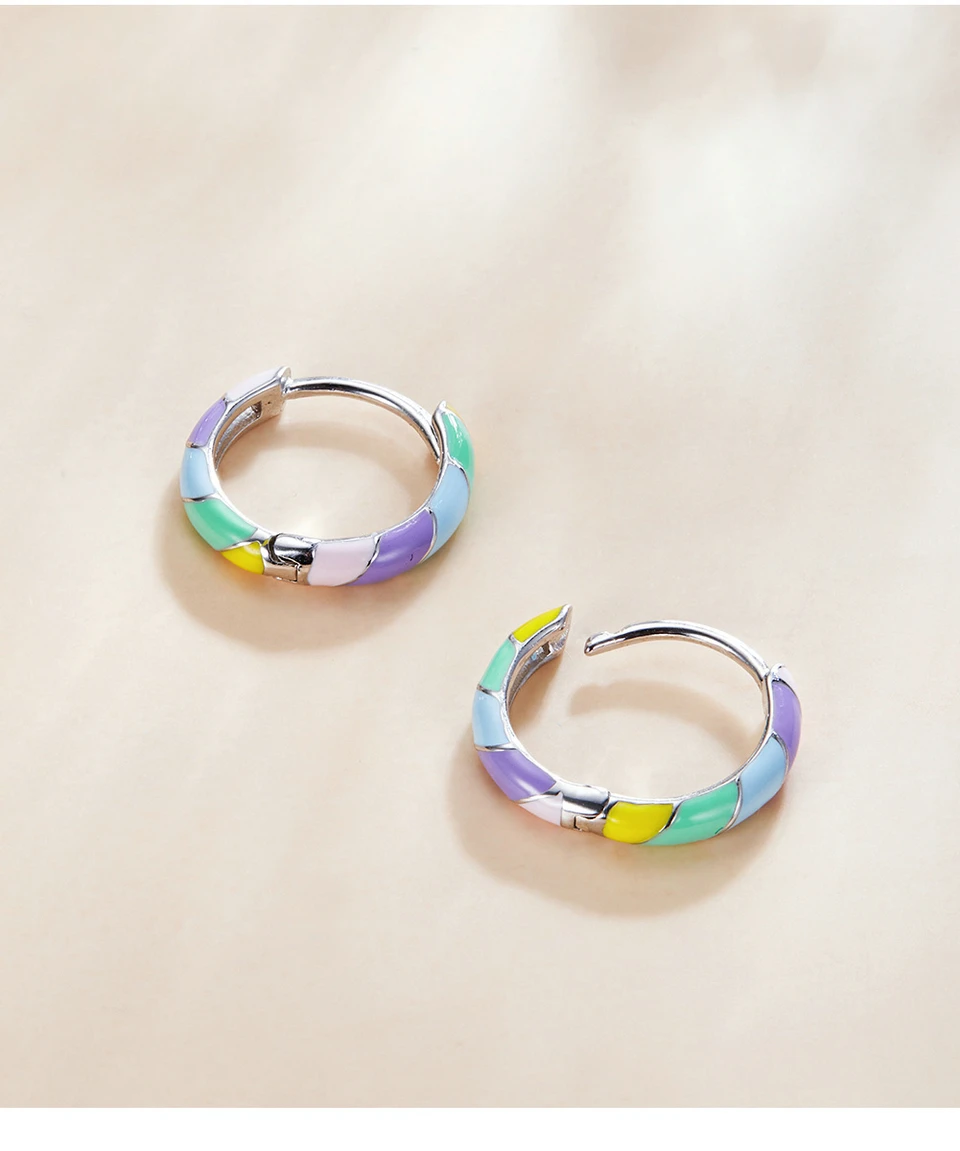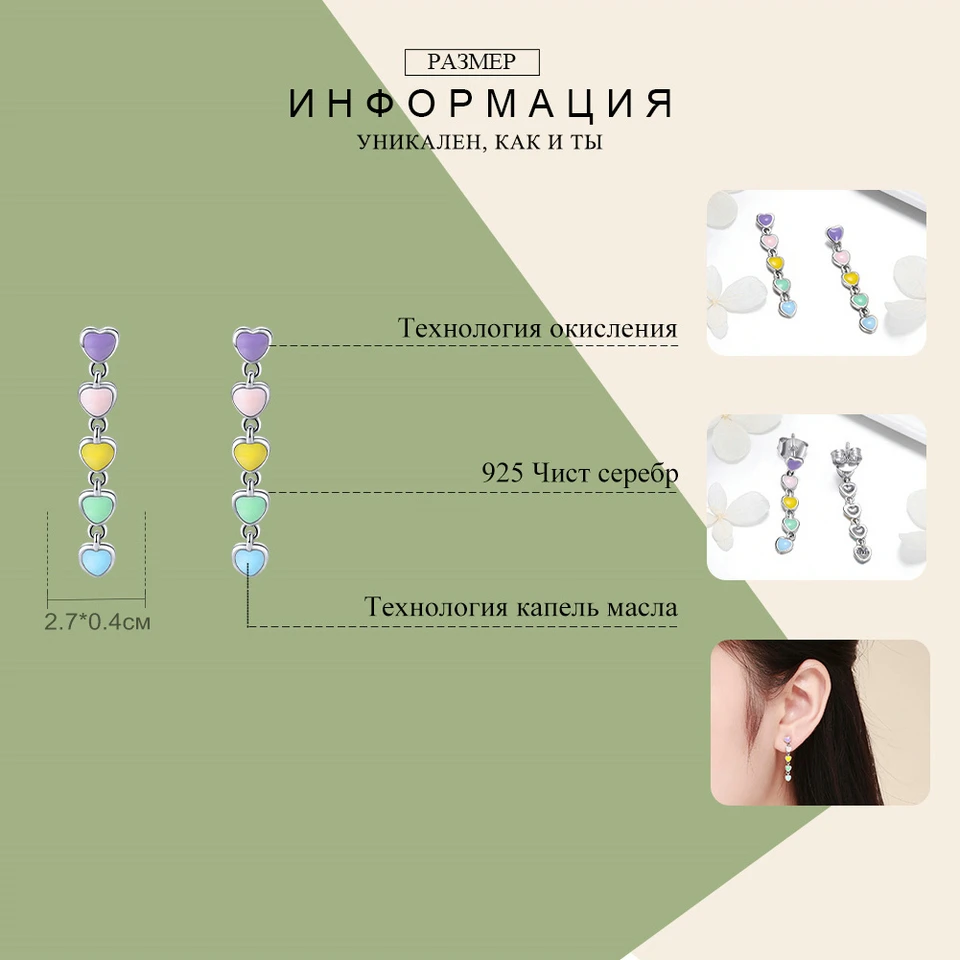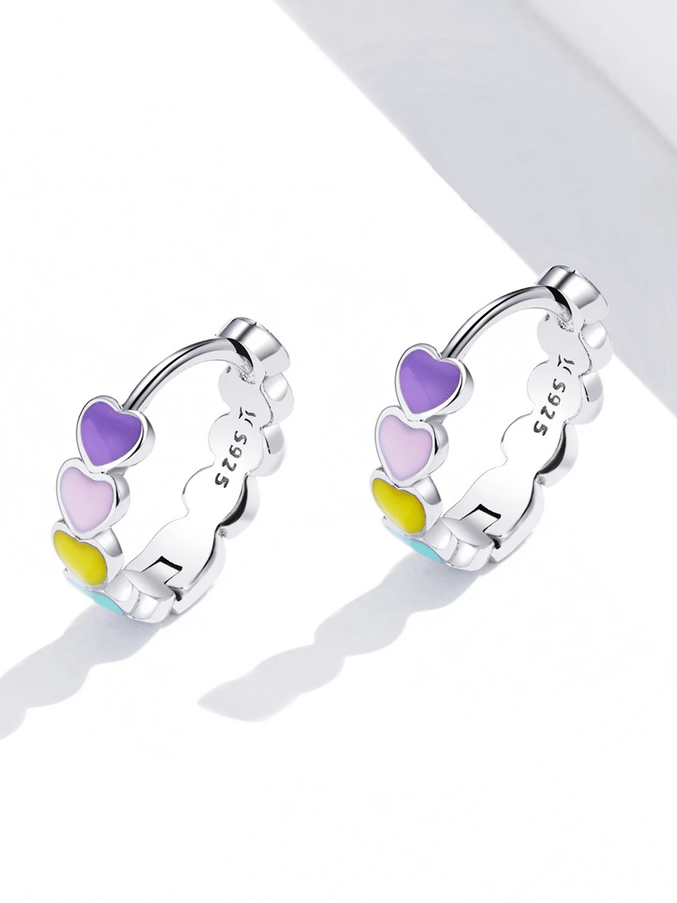 bamoer подлинное серебро 925 пробы, разноцветные эмалевые серьги-кольца в форме сердца, радуги, модные женские украшения для девочек