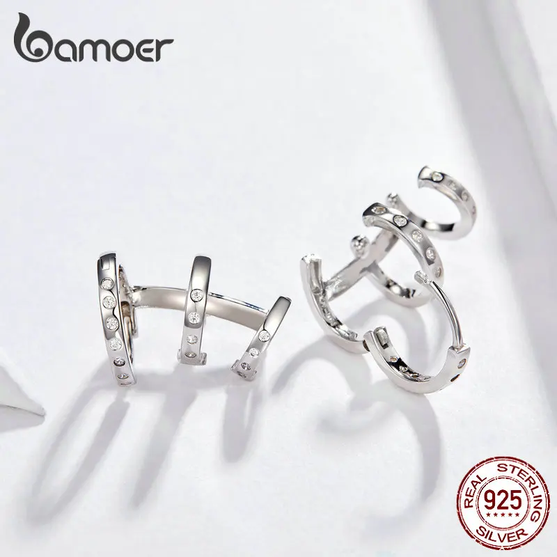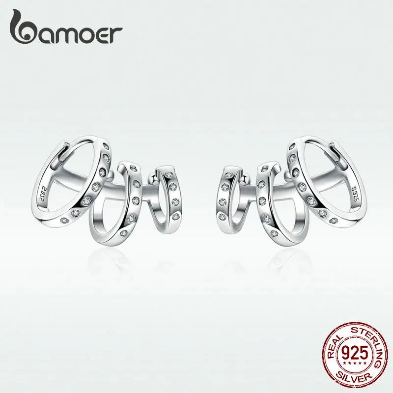 bamoer женские серьги-кольца из серебра 925 пробы,панк стиль,cерьги-гвоздики,высшее изящное ювелирное изделие подарков