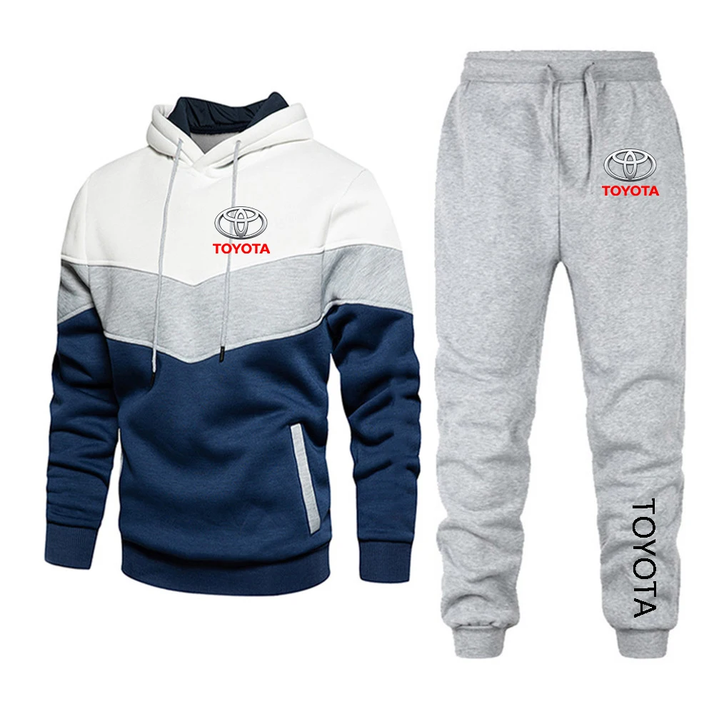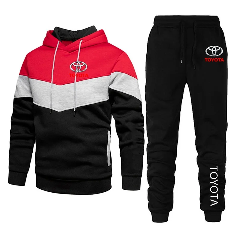 Мужской костюм-двойка с принтом Toyota Harajuku, трехцветная толстовка с v-образным вырезом и брюки, спортивная одежда, Новинка для весны и осени