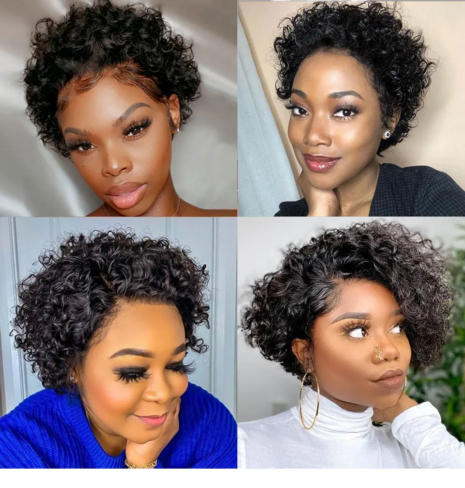 Короткие вьющиеся парики из человеческих волос, парик с вырезами фея, парики на шнуровке спереди для женщин, парик с неповрежденными волосами для женщин, предварительно выщипанные Детские волосы