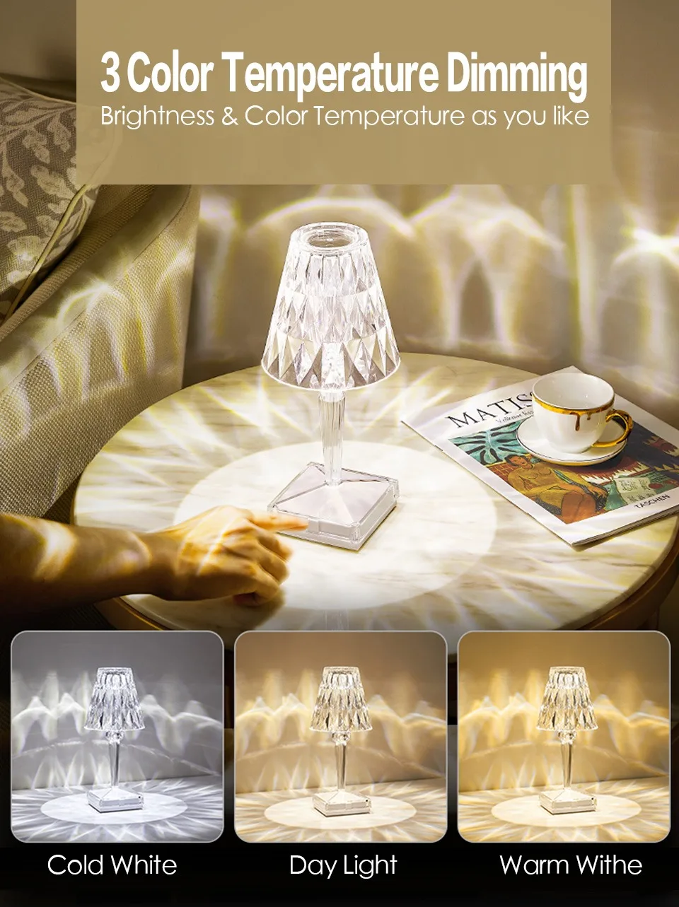 Ночной светильник, настольная лампа с бриллиантами, USB Перезаряжаемый акриловый подарок, украшение, Настольная прикроватная тумбочка для спальни, хрустальный светильник, светильники
