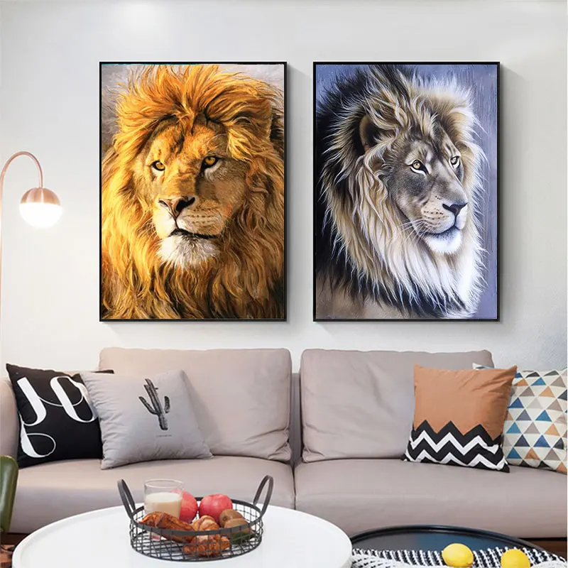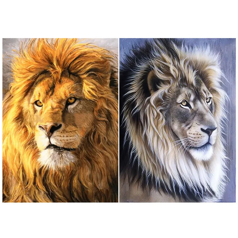 QIQING алмазная живопись Лев на лугу, алмазная вышивка, полноразмернаякруглая алмазная живопись сделай сам, вышивка крестиком, домашний декор