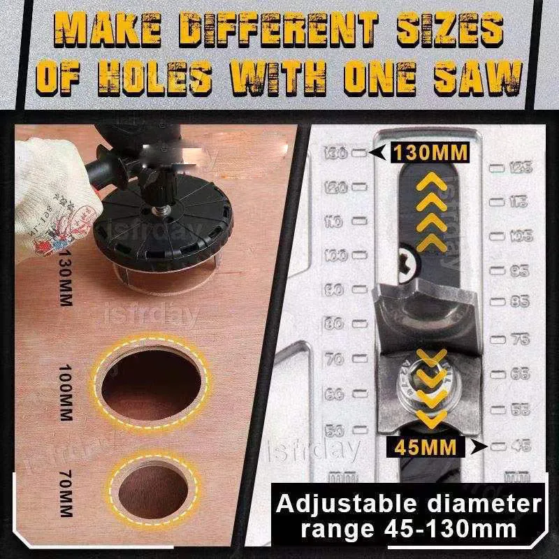 Регулируемая штамповочная пила, регулируемый диаметр резки 45-130 мм, легкий и быстрый штопор для отверстий, инструменты для плавной резки и деревообработки