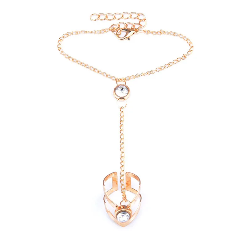 Женский браслет-цепочка с кольцами, браслет на палец с кристаллами