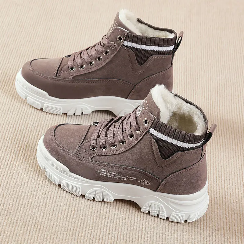 Женские повседневные кроссовки на шнуровке, зимние ботинки на платформе, теплые плюшевые ботинки
